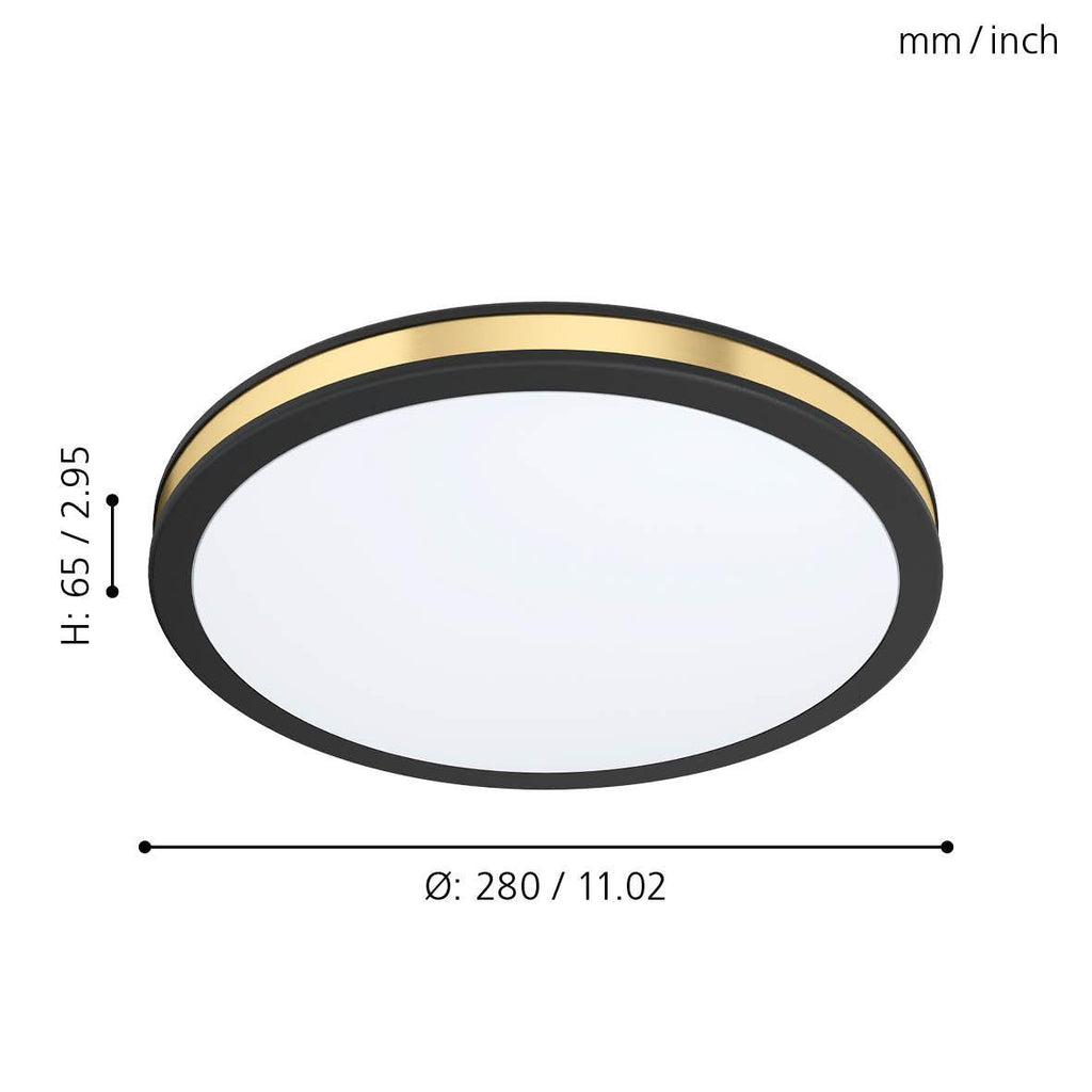 Eglo Pescaito Black & Gold Round LED Ceiling Flush - 28cm