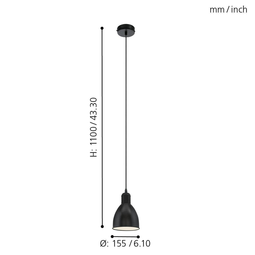 Eglo Priddy Black Round Metal Industrial Ceiling Pendant