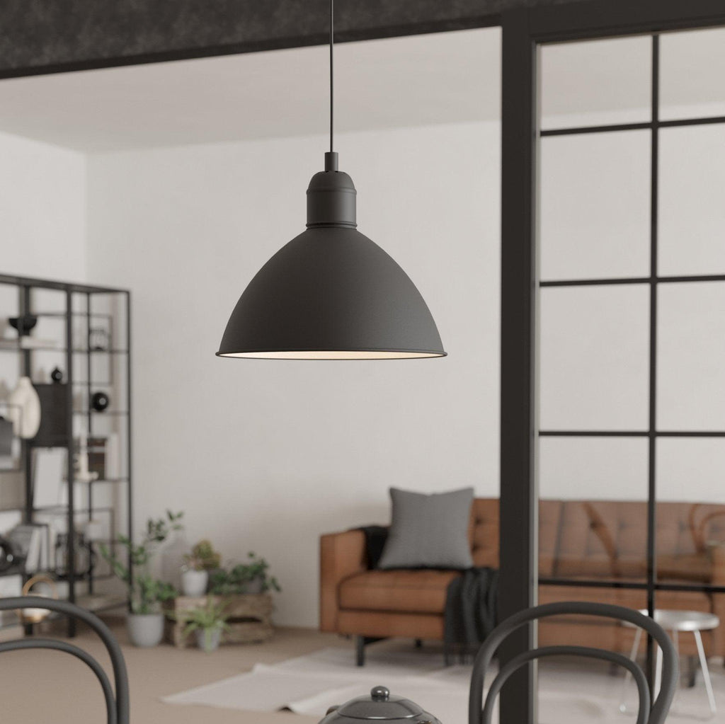 The PRIDDY pendant light has a suspended round metal shade in black with a white inner surface. With its subtle industrial-style design and 30.5 cm lampshade, the pendant light is the perfect finishing touch for modern interiors. The pendant light provides attractive downward lighting in the living room or above the dining room table. The product has an E27 lamp holder and requires 1 x E27 lightbulb, which is not included.