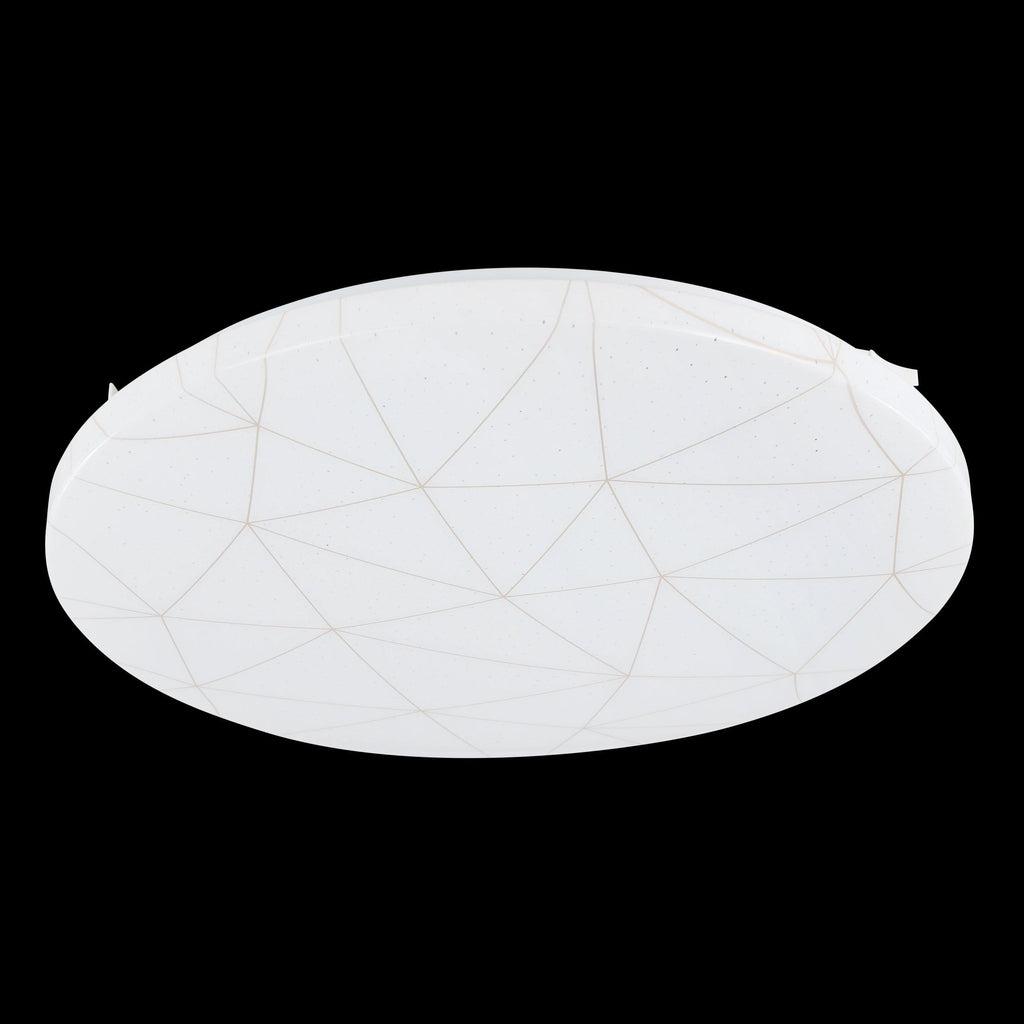 The RENDE LED ceiling light features a white metal base and a round white plastic light diffuser. The plastic cover features gold lines with a geometric motif, while the integrated LEDs produce a warm white light. With a diameter of 38 cm, the ceiling light blends seamlessly with modern interiors and provides unique lighting for any space, whether in the kitchen, living room, bedroom or hallway.