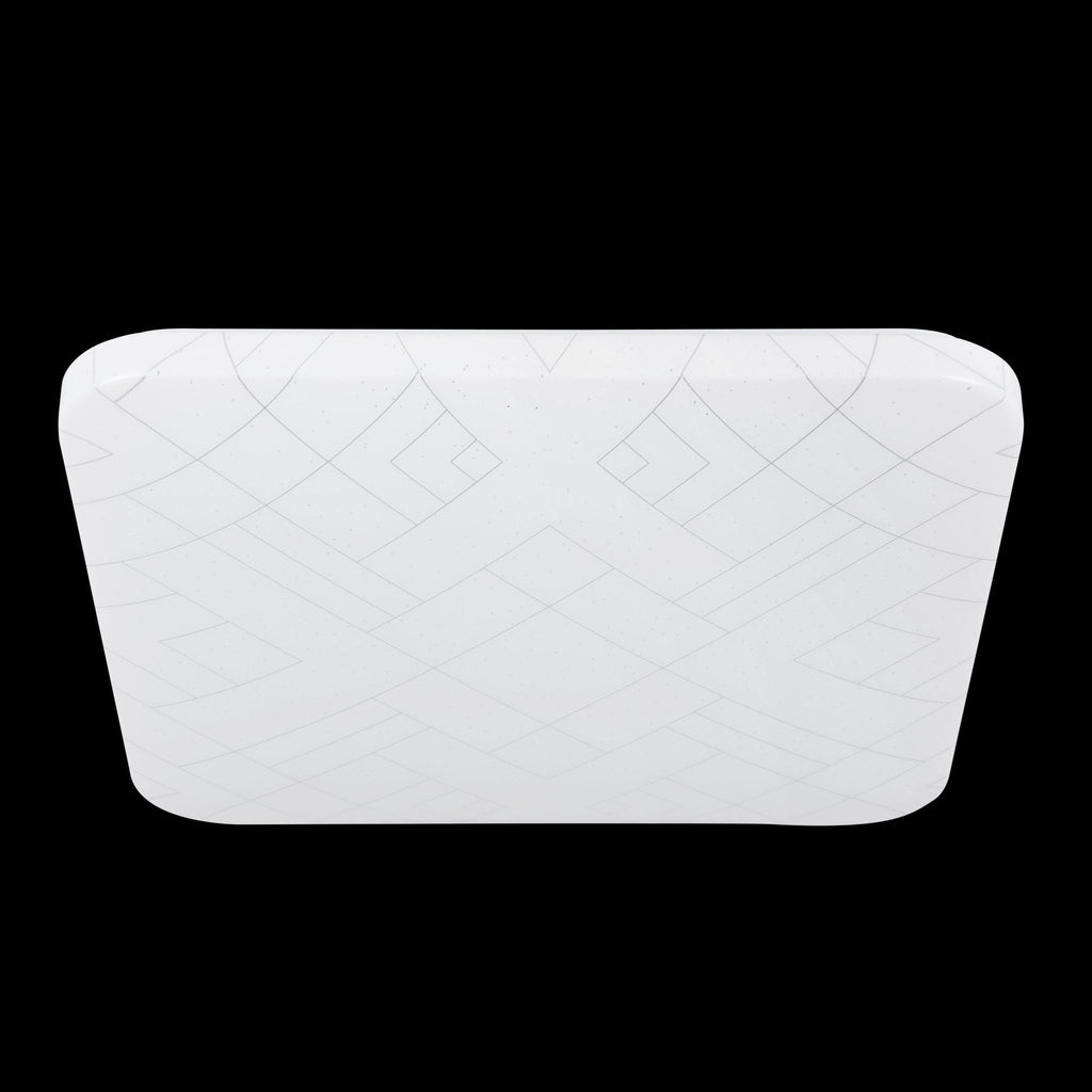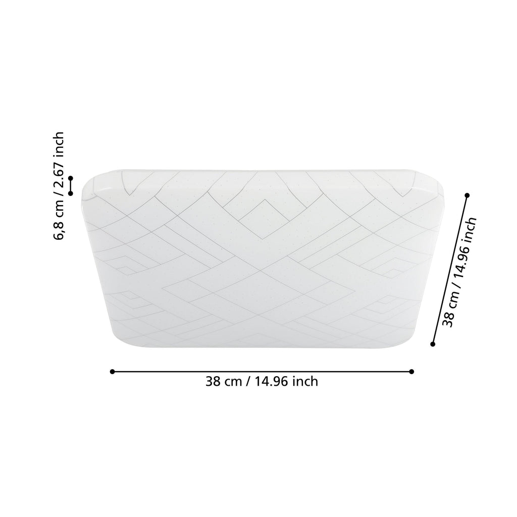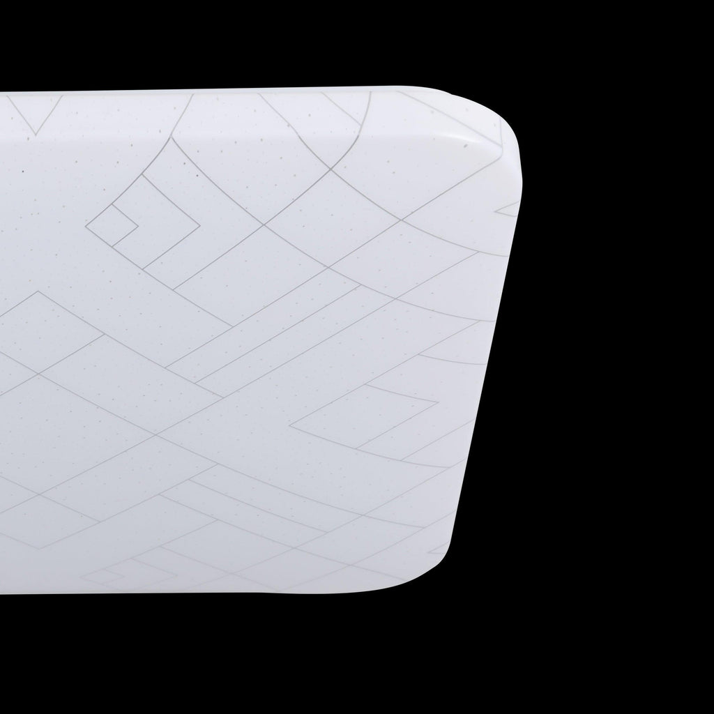 The RENDE LED ceiling light features a white metal base and a square white plastic light panel with rounded corners. The plastic cover features silver lines with a geometric motif, while the integrated LEDs produce a pleasant warm white light. The ceiling light measures 38 x 38 cm and blends seamlessly into modern interiors, providing unique lighting for any space, whether in the kitchen, living room, bedroom or hallway.