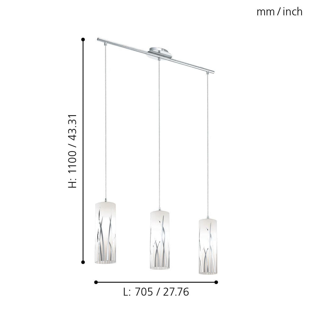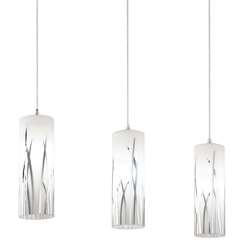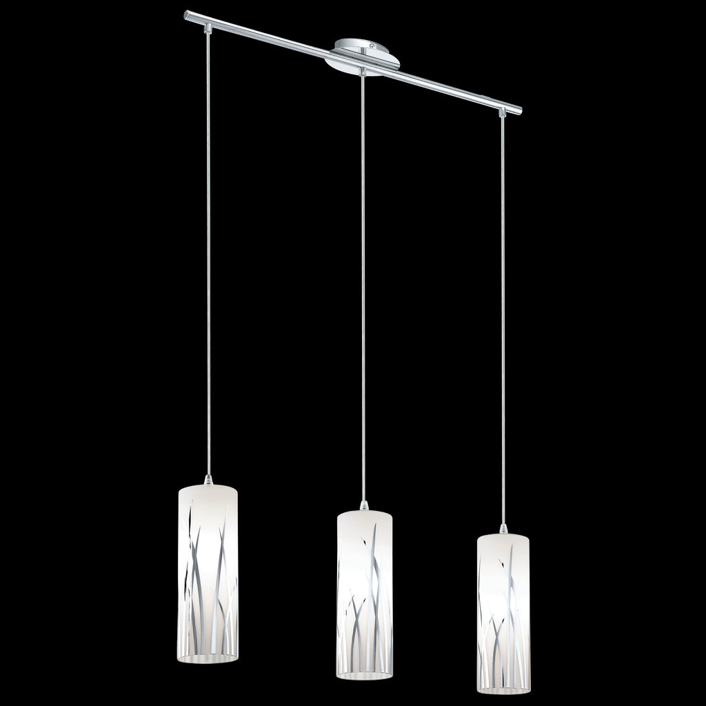 Eglo Rivato 3 Light Bar Chrome Pendant - White Glass Shades