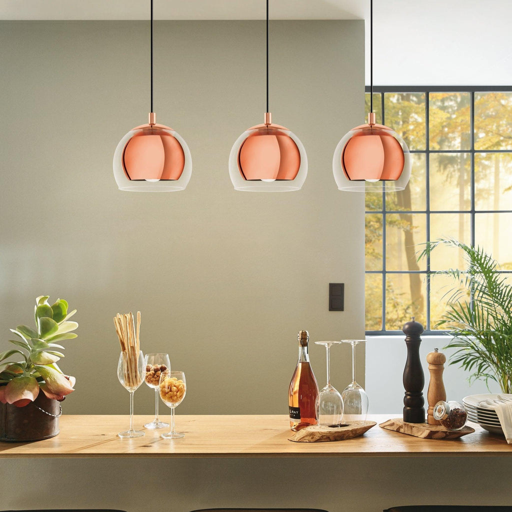 Eglo Rocamar 3 Light Clear Glass & Copper Ceiling Pendant