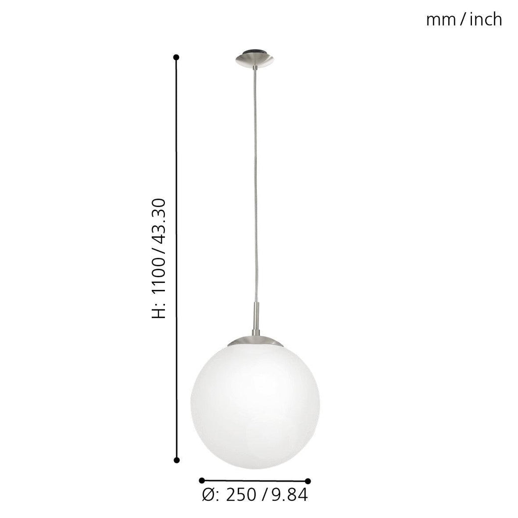 Eglo Rondo Opal Glass Sphere & Nickel Ceiling Pendant - 28cm