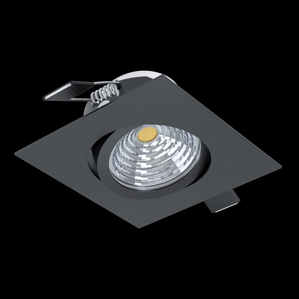 The SALICETO recessed LED light features a black aluminium body with a pivoting spotlight positioned inside a square frame. The light is 50 mm deep and has a diameter of 88 mm. The pivoting head is fitted with integrated LEDS that produce a pleasant warm white light and are dimmable using a coordinating rotary dimmer on the wall. This head allows you to adjust the light to accentuate specific areas of the room. The recessed spotlight blends seamlessly into almost any living space, including the kitchen, living room and hallway. A recess of 68 mm is required for installation.
