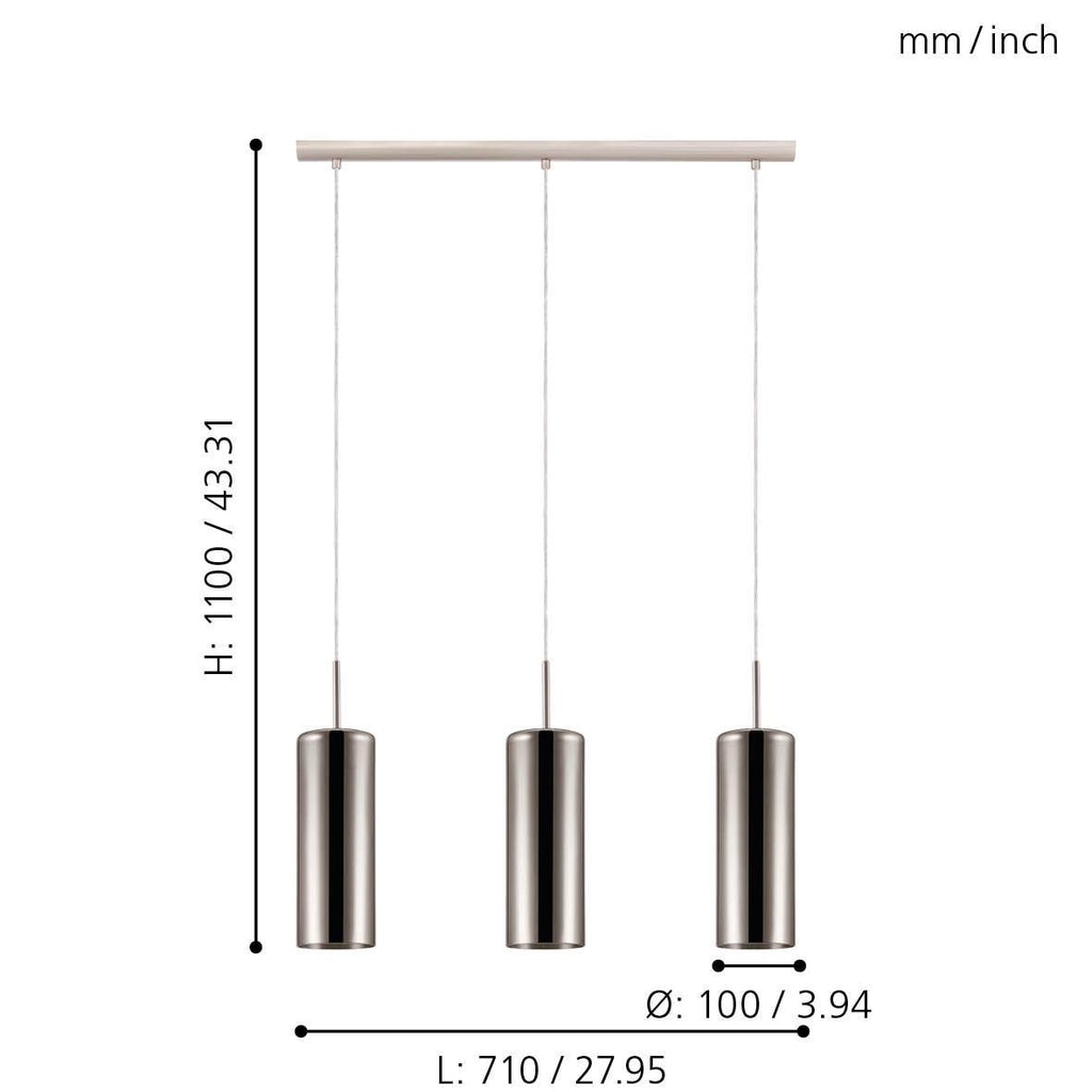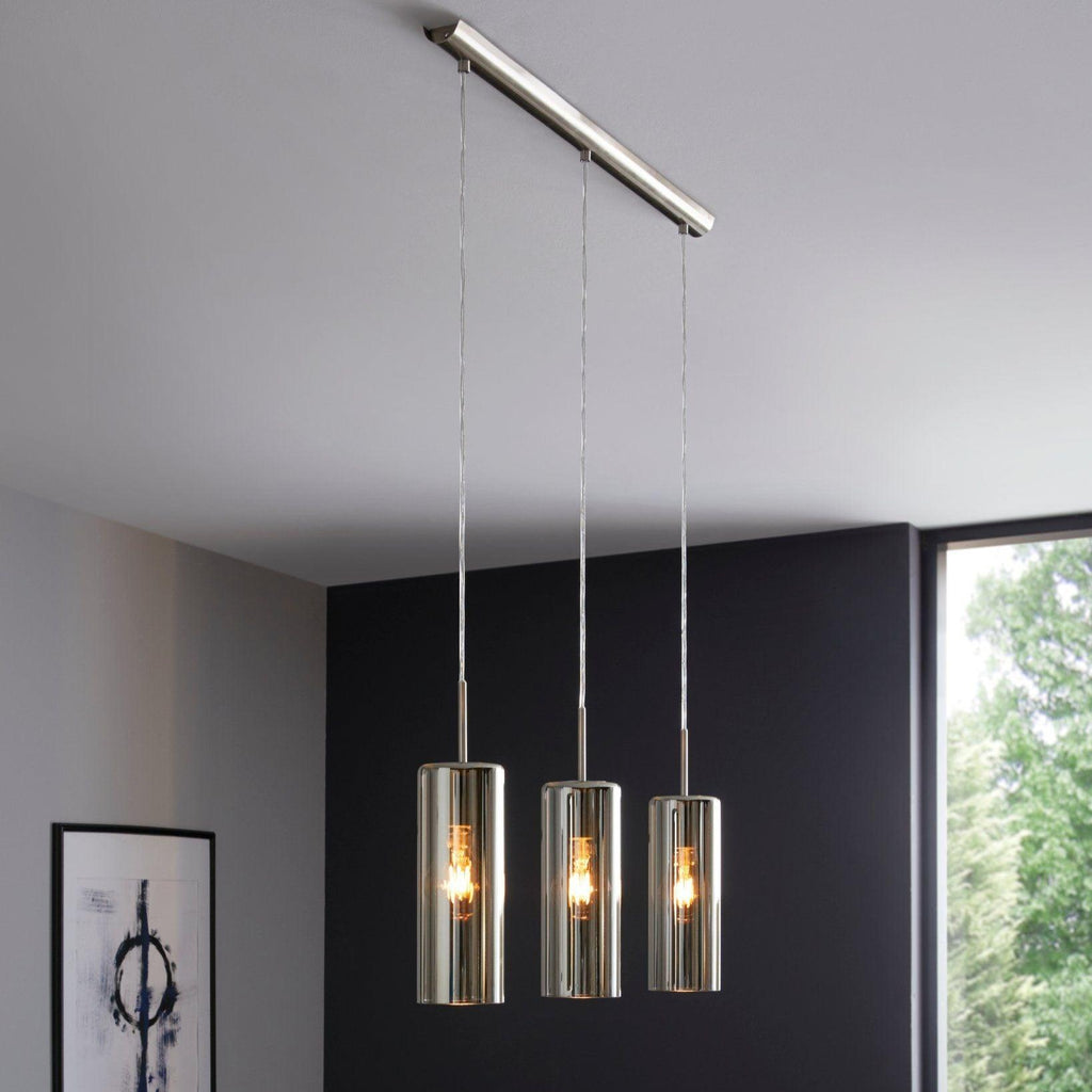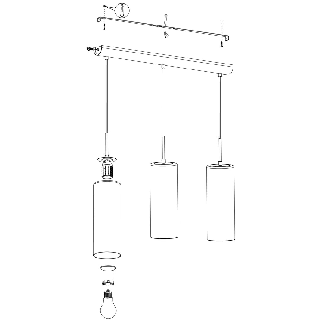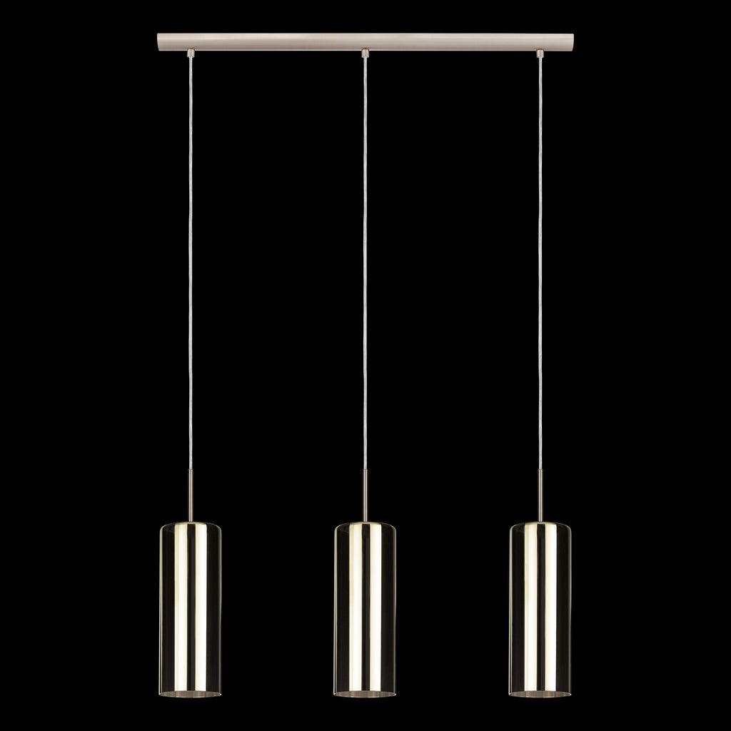 The SELVINO pendant light has three cylindrical gold-coated glass lampshades suspended from a matte nickel canopy. The modern design works well with almost any interior style and will create the right mood in any space, whether in the living room or over a long table in the dining room. Lightbulbs are not included. The product has E27 lamp holders and requires E27 lightbulbs.