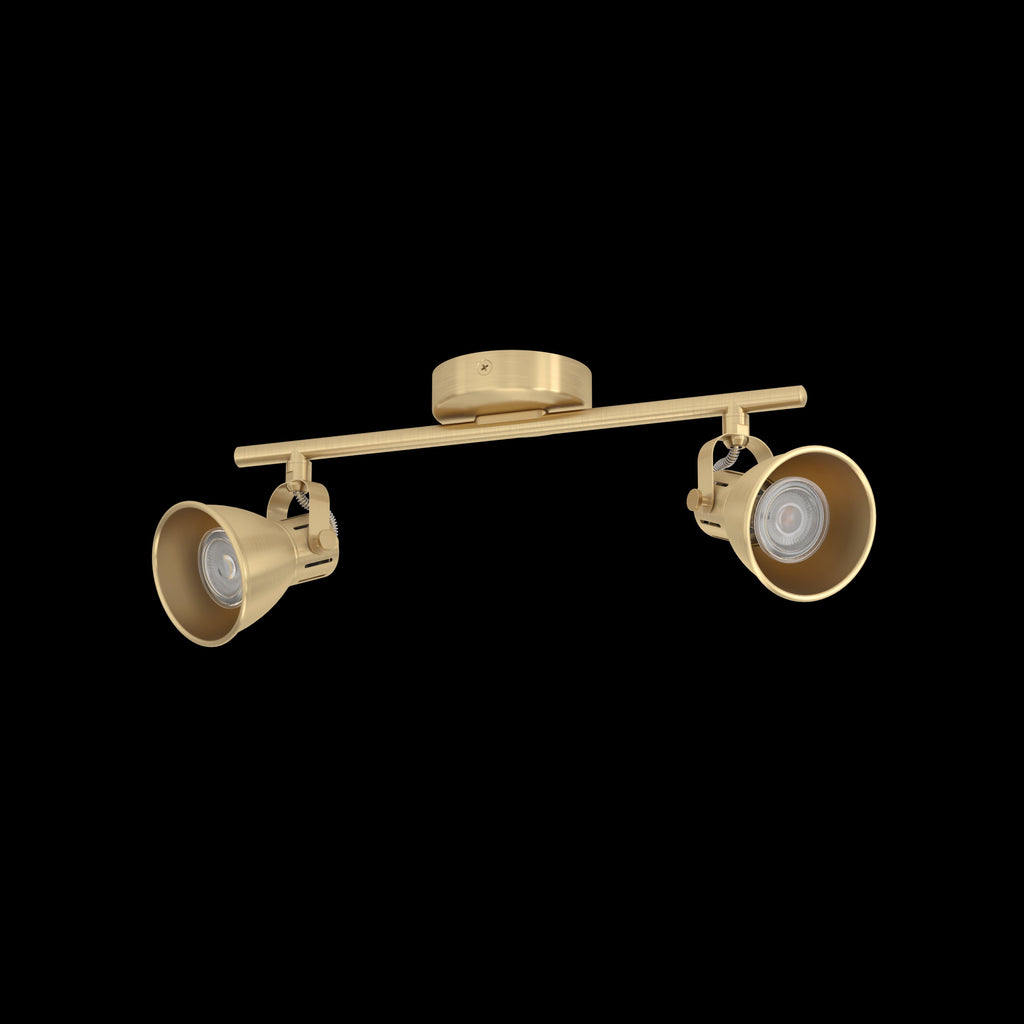 The SERAS LED ceiling light has a brushed brass metal mount and two adjustable metal spotlights in the same colour. The spotlights have a gold-coloured inner surface. The ceiling spotlight’s trendy look perfectly compliments modern interiors and provides focused lighting in the kitchen, living room, bedroom or hallway. The product includes GU10 LED lightbulbs, which produce a pleasant warm white light.