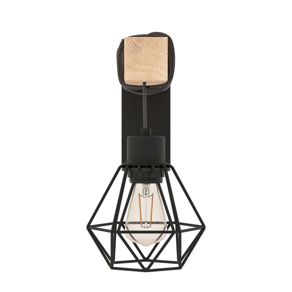 Eglo Townshend 5 Black & Wood Wall Light - Wire Caged Shade