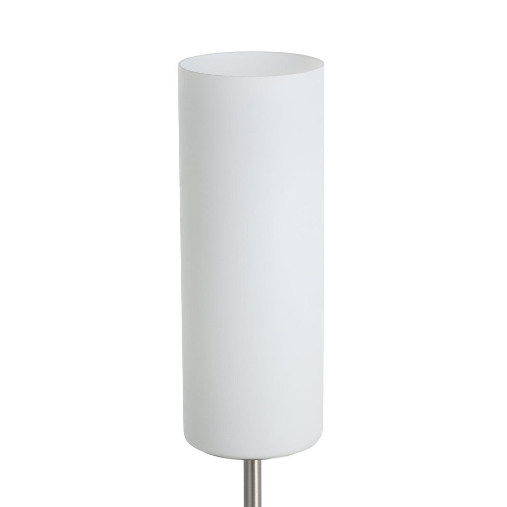The TROY 3 table lamp features a metal base in a matte nickel finish and a cylindrical lampshade made of white satin glass. The table lamp switches on and off easily using the in-line switch. With its simple design, the table lamp works well with almost any interior style and creates cosy lighting in any space, whether in the living room, bedroom, hallway or dining room. The product has an E27 lamp holder and requires 1 x E27 lightbulb, which is not included.
