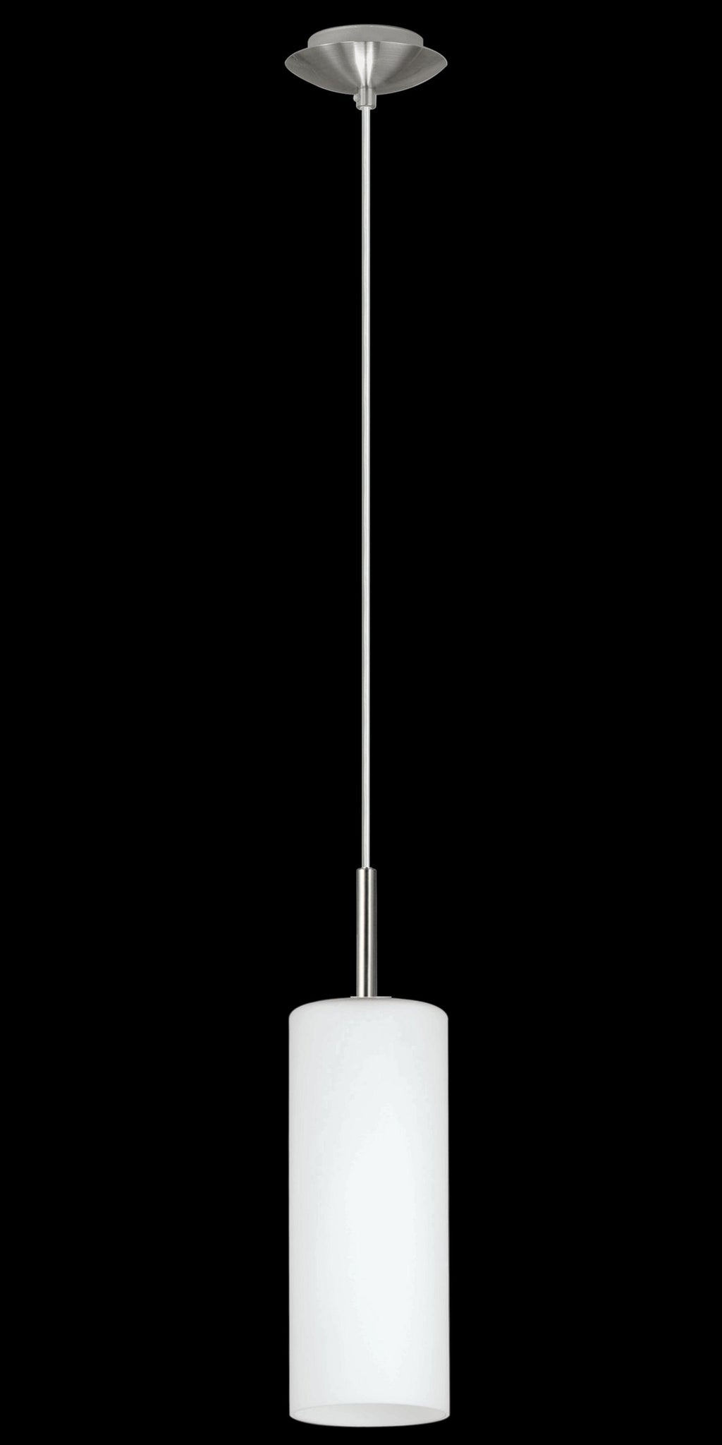 The TROY 3 pendant light is made of metal in a matte nickel finish and has a suspended cylindrical lampshade made of white satin glass. The simple design works well with almost any interior style and creates cosy lighting in any space, whether in the living room or dining room. The lightbulb is not included. The product has an E27 lamp holder and requires an E27 lightbulb.