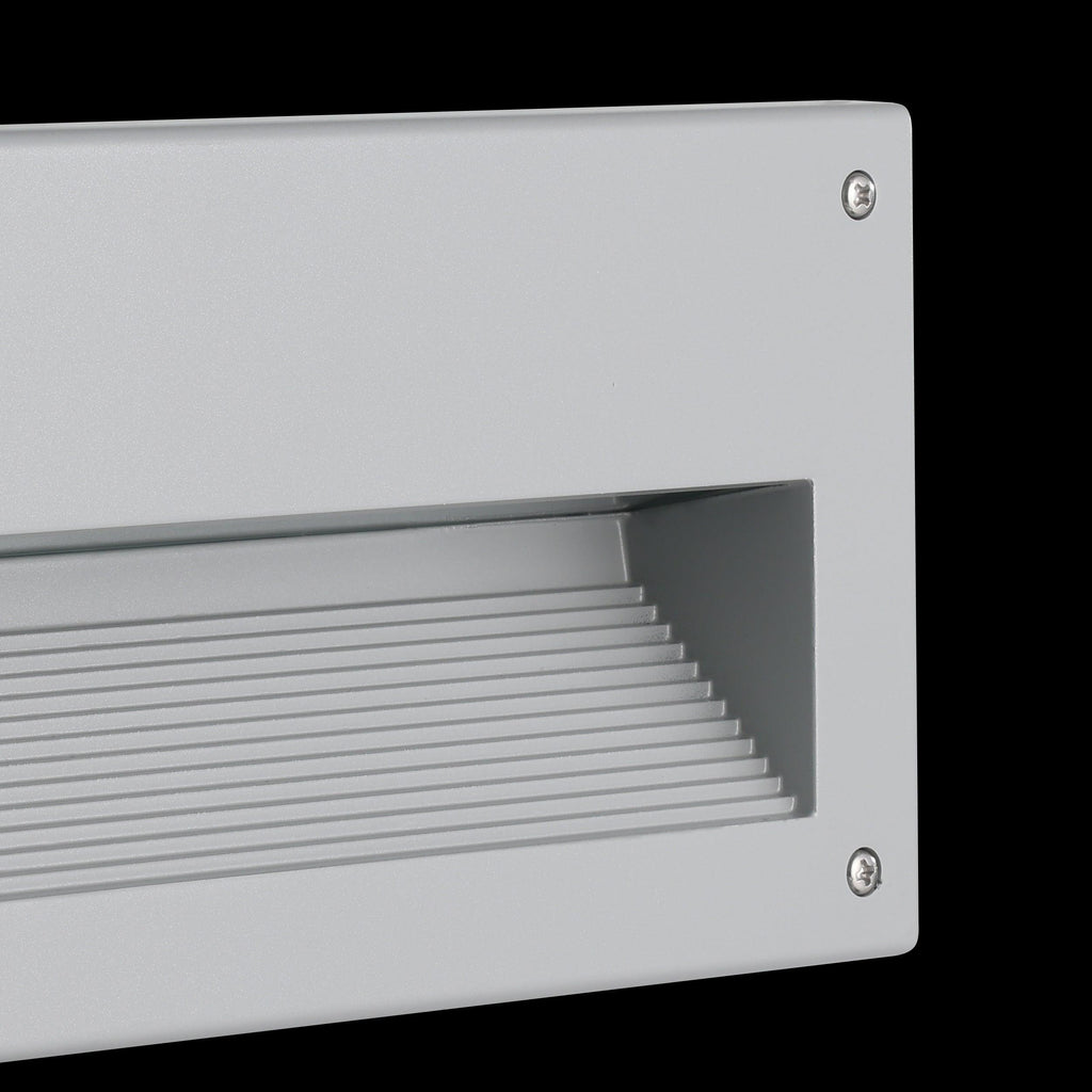The ZIMBA recessed light for outdoor areas is made of silver-coloured cast aluminium and has a satin glass light panel in white. The light is 75 mm deep and measures 227 x 127 mm. The product is suitable for outdoor use due to its IP44 protection against spray water. A recess of 196 x 96 mm is a requirement for installation. The rectangular recessed spotlight’s classic design blends with any modern outdoor space, providing stylish indirect lighting for external house walls, including on the terrace, balcony, or the entrance area. The lightbulb is not included. The product has an E14 lamp holder and requires an E14 lightbulb.