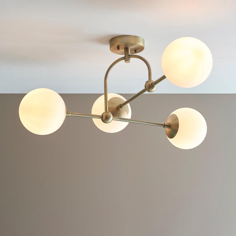 Eldorado 4 Light Brass Ceiling Semi Flush - Opal Glass Shades