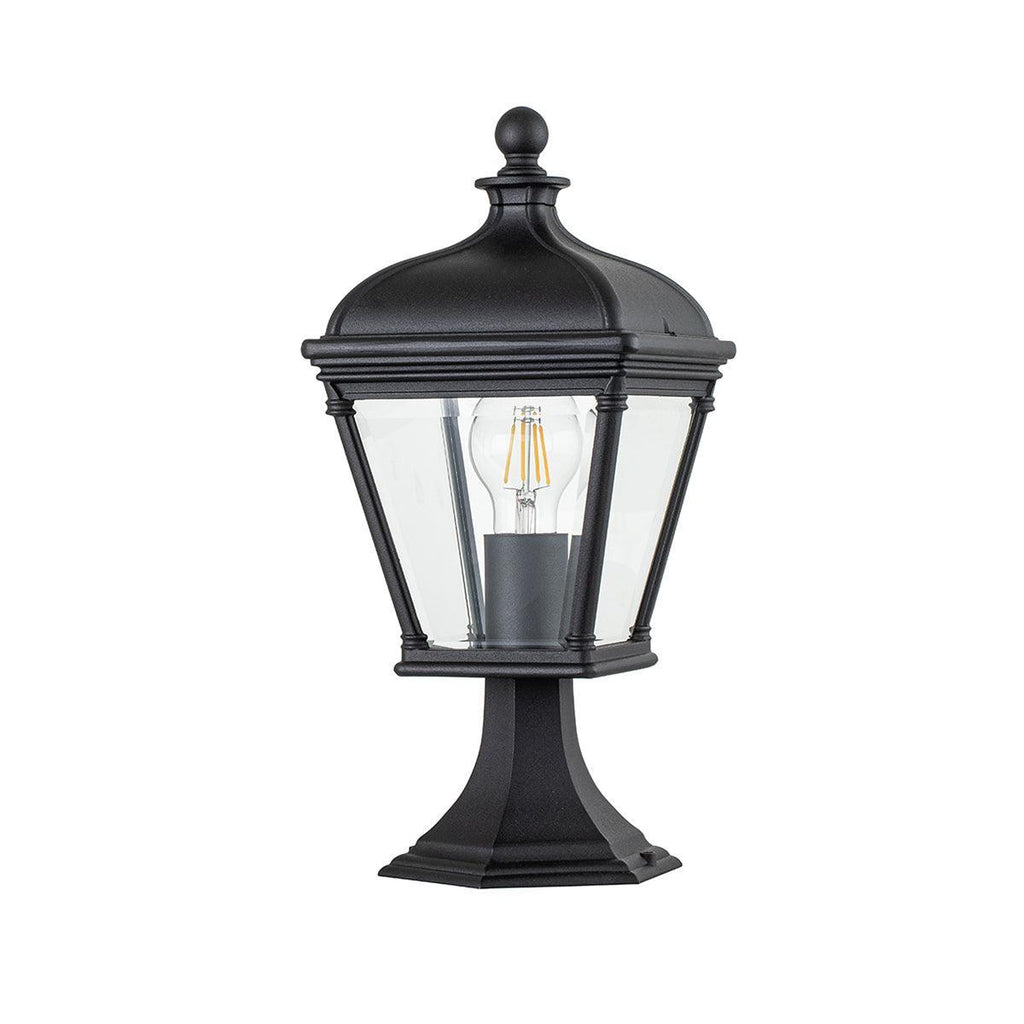 The Bayview has a classical romantic Georgian elegance, that illuminates any exterior with a crisp stylish presence. This 1 Light Medium Pedestal Lantern is a sophisticated design constructed from Aluminium, with clear bevelled Glass, finished in black and IP44 rated.