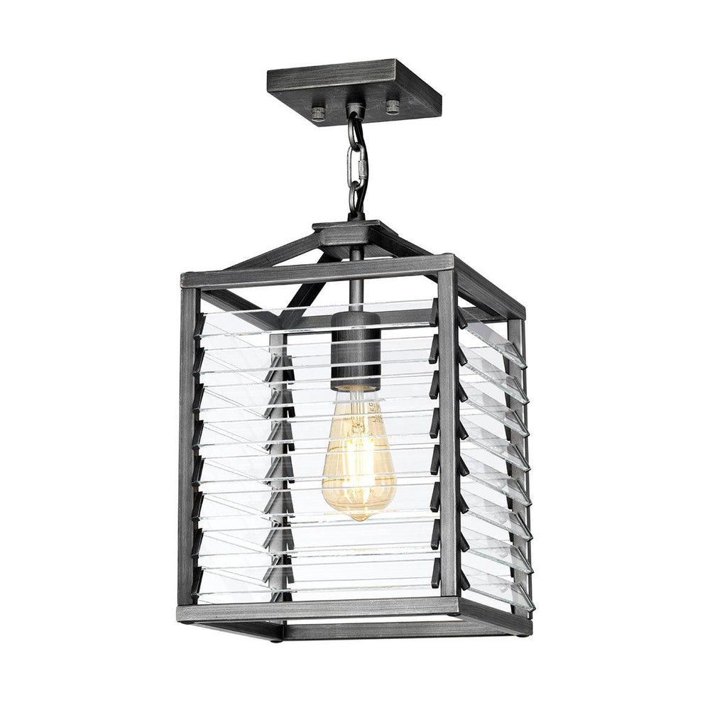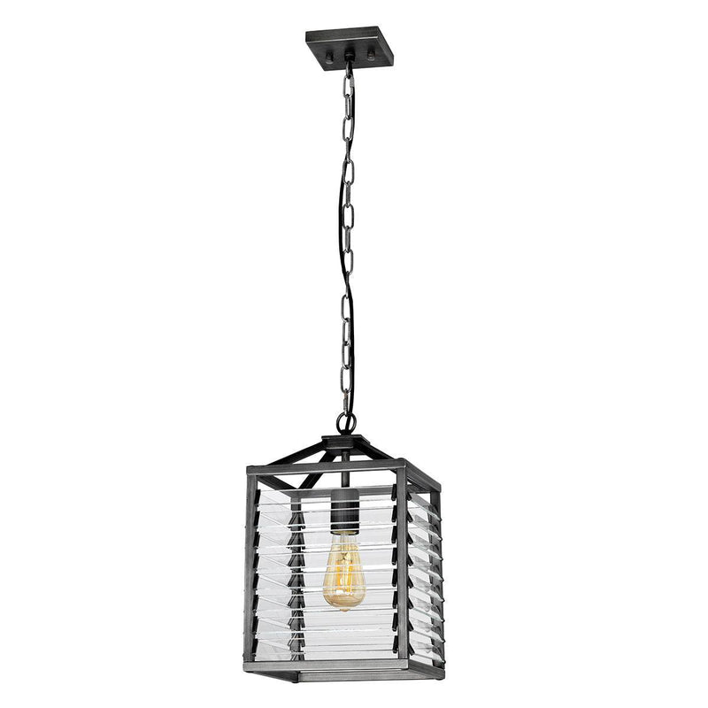 Elstead Louvre 1 Light Gunmetal Pendant - Clear Glass Slats