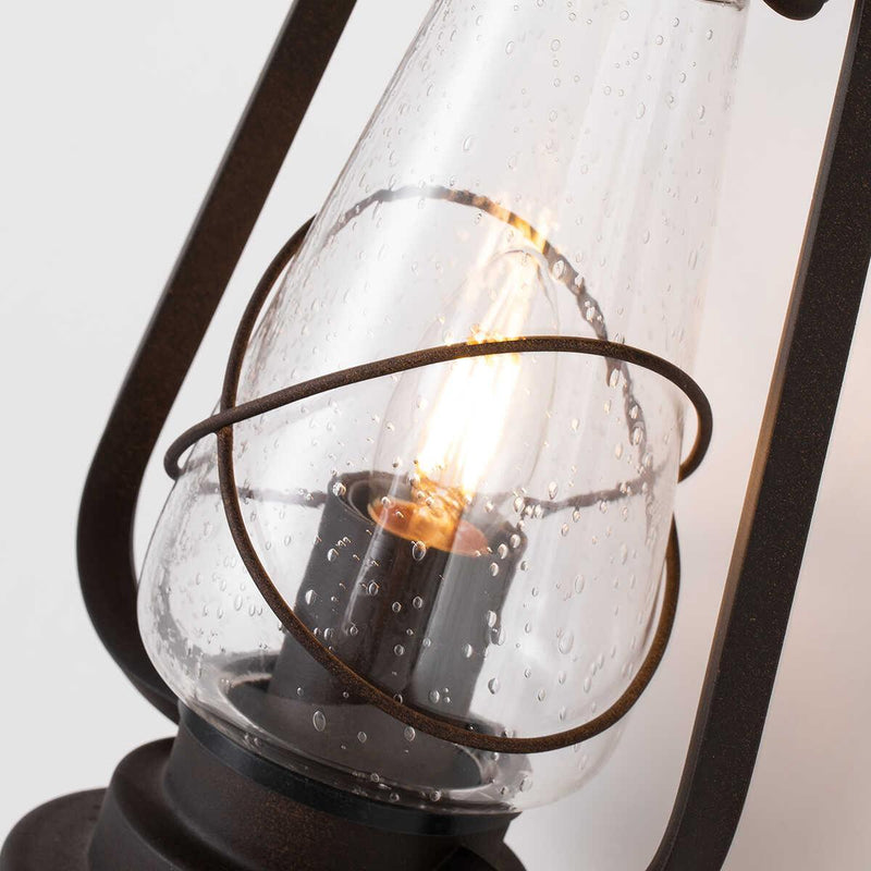 The Miners Old Bronze Finish Outdoor Wall Lantern from Elstead Lighting is part of the vintage collection with a industrial flavour in its design, and with a lovely vintage Old Bronze finish. This lamp is a robust fitting with resistance to the elements in mind, and has been hot zinc dipped and given a 2 year anti-rust guarantee. The Miners lantern is also available as a pedestal or pendant lantern.