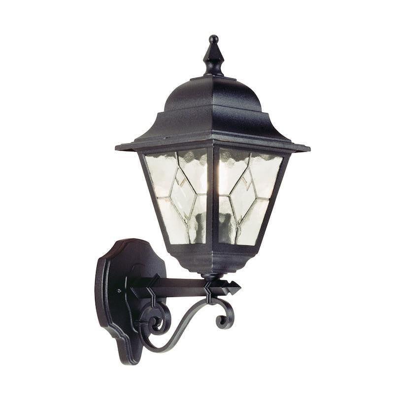 This Norfolk Black Finish Outdoor Uplighter Wall Lantern from Elstead Lighting is part of a lovely range of traditional lanterns, finished in satin black, with five separate glass panels which are hand-leaded together to give you elegance and sophistication with the emphasis on light. This, combined with elegant detailing to the metalwork, mean the Norfolk range will add a touch of class to your outdoor space. The range includes, lamp post lanterns, wall, pedestal, pillar and pendant lanterns, all with a 5 year anti corrosion guarantee, as well as a PIR lantern with a motion sensor which is guaranteed for 2 years. Corner mounting bracket available for this lamp (please select from the drop down menu).