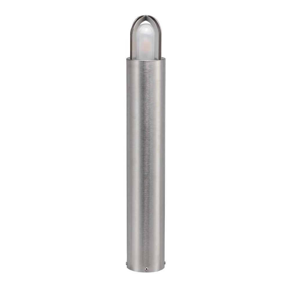 The Paignton bollard is a bold and modern design that is constructed from 316 marine grade stainless steel with a simple crossed arch metal band to protect the frosted glass on top. IP55 Rated.