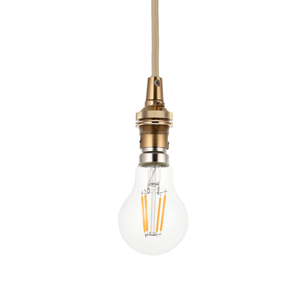 An authentic B22 brass flex set finished with subtle natural braided cable and brushed aged brass metalwork. Pair with one of our 35cm or 40cm decorative fabric shades to add a touch of understated colour into your home.