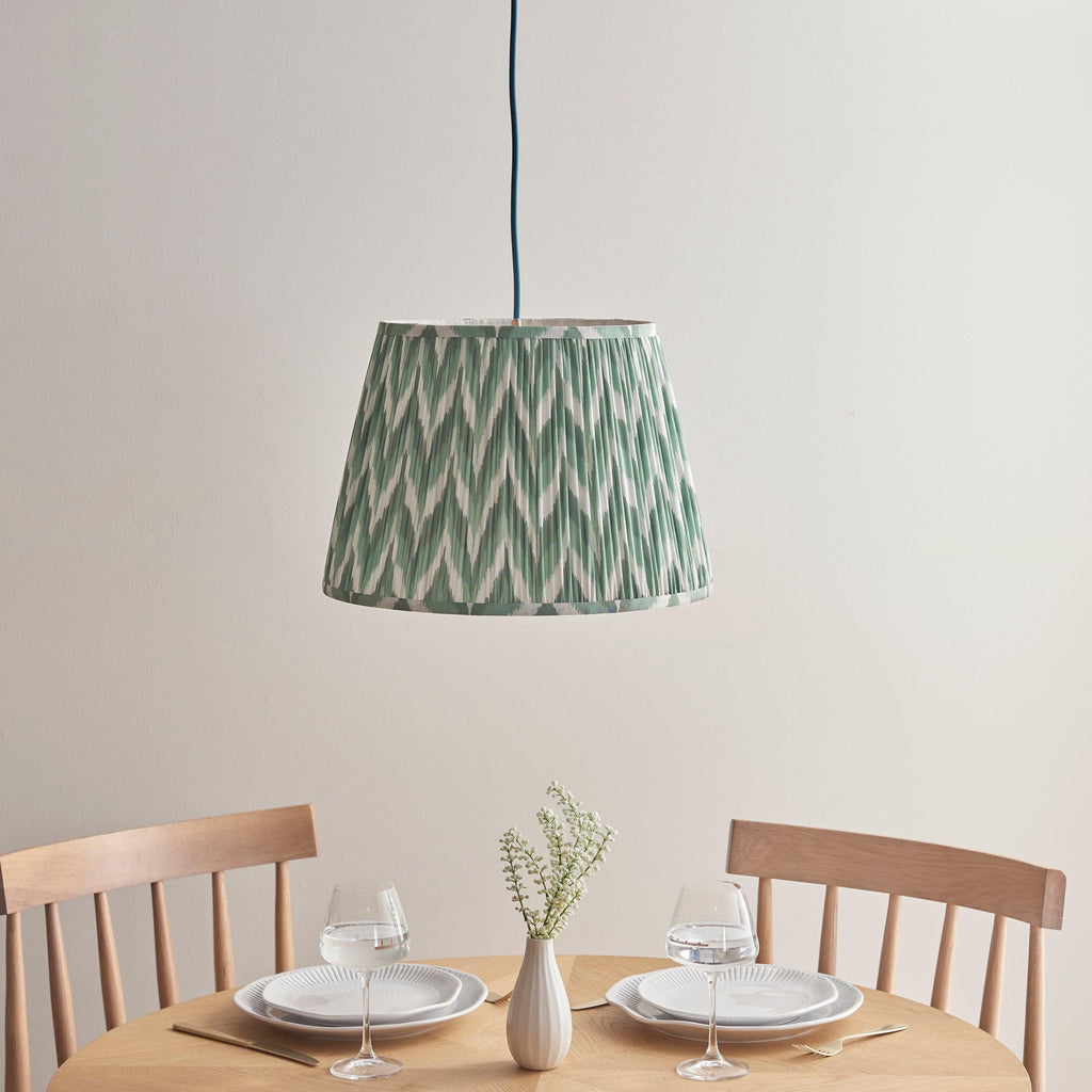 Eltham Ceiling Pendant Light With Blue Flex and Green Zigzag 40cm Shade