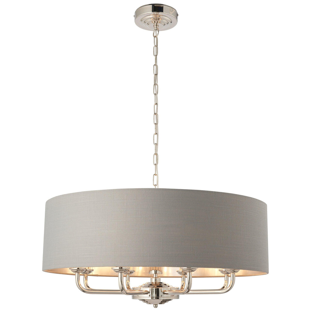 Endon Highclere Bright Nickel 8 Light Pendant - Charcoal Shade 94415