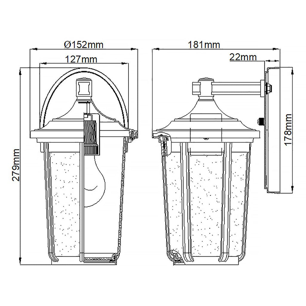 Elevate your outdoor space with the Fairfield 1 Light Medium Black Outdoor Wall Lantern. Featuring clear seeded glass and a sleek black finish, this fixture seamlessly blends classic charm with modern sophistication—complementing both traditional and contemporary exteriors. Designed for durability and rated IP44 for weather resistance, it’s the ideal choice for enhancing your home’s curb appeal. Shop with confidence from the UK’s leading lighting specialists and enjoy free 90-day UK returns.| Projection | 18.1cm/7.1" |