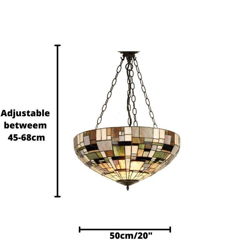 The Falling Water range is named after the Frank Lloyd Wright building as the subtle green tones remind us of the natural woodland setting and the symmetric hand-cut art glass the shape of the building. The Falling Water range is complemented by a further choice of ceiling lights, as well as table lamps, floor lamps and wall lights, all in the same stunning finish.