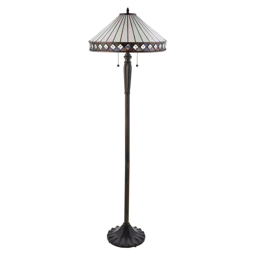 The Fargo Tiffany Floor Lamp is a perfect example of Art Deco styling at its best - bright, stylish and easily coordinated in your home. The white Tiffany glass has a wonderful iridescent shimmer that will change colour as you move around the lamp.