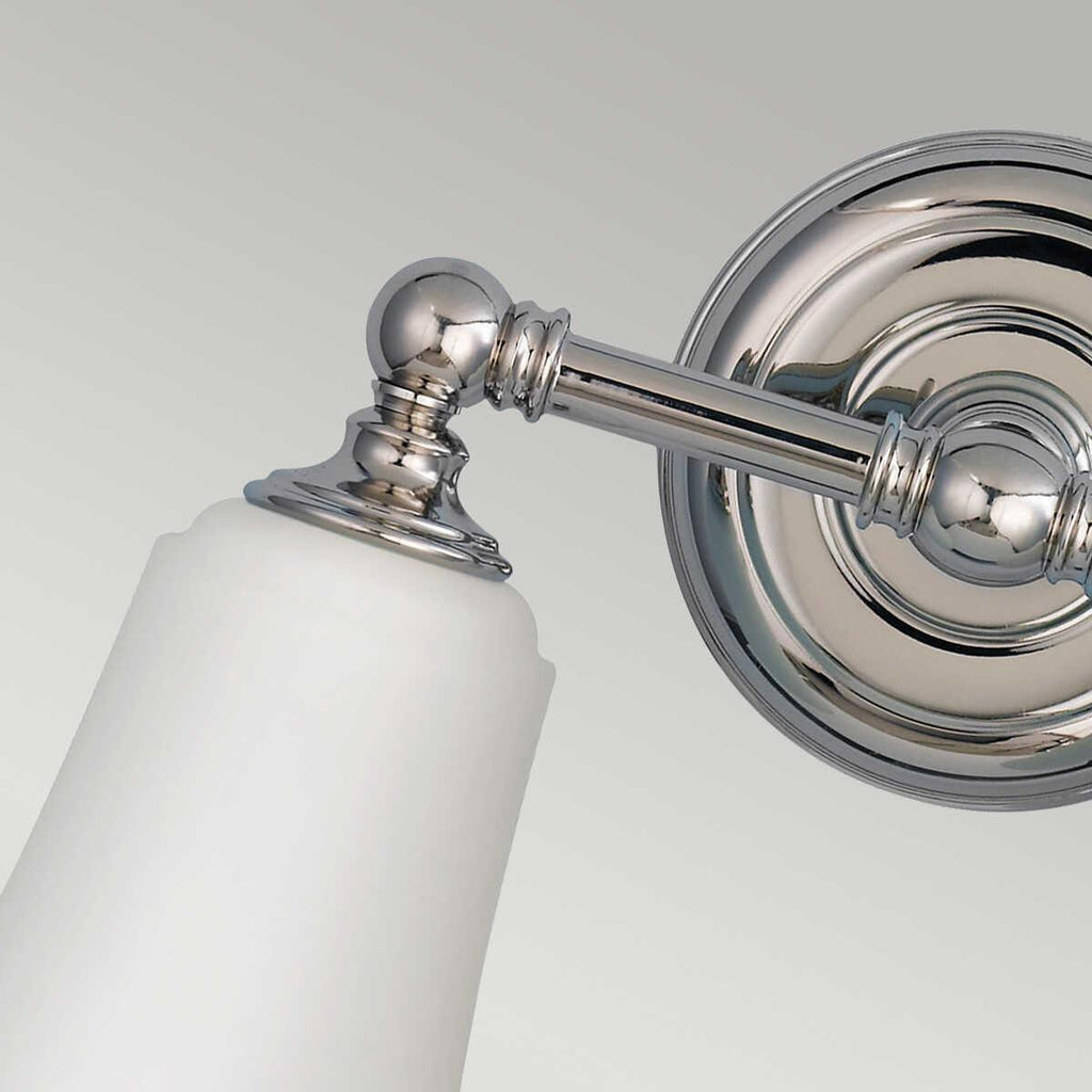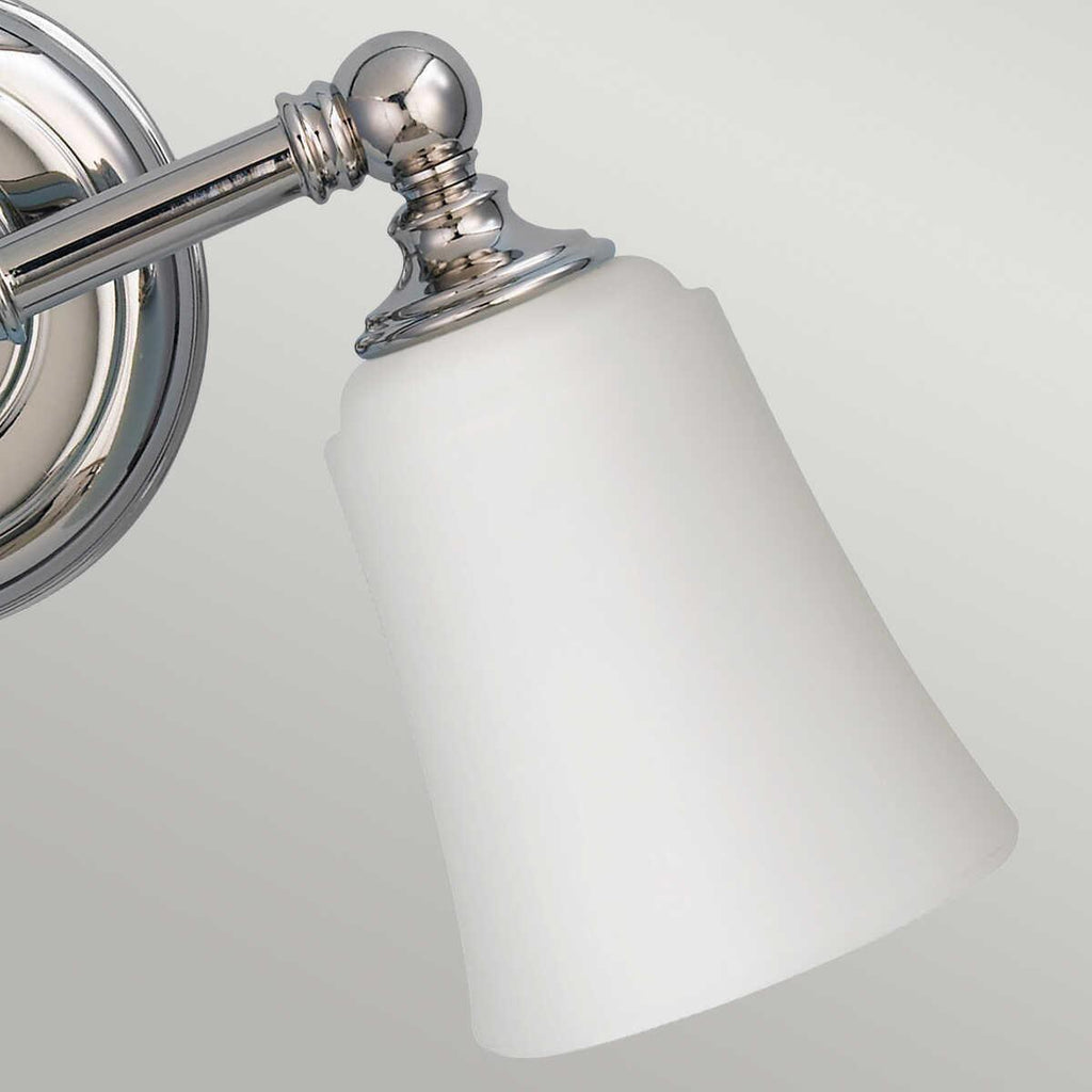 This Feiss Huguenot Lake Polished Chrome Finish 2 Light Bathroom Above Mirror Light from Elstead Lighting is a simple, classic and elegantly designed traditional light that is specifically intended for use above mirrors and is IP44 rated for use in bathrooms, although it will look great in whichever room you choose to put it. The polished chrome finish is complemented by the opal glass shades. The Huguenot Lake range is also available as a 3 Light Mirror light and a single wall light.