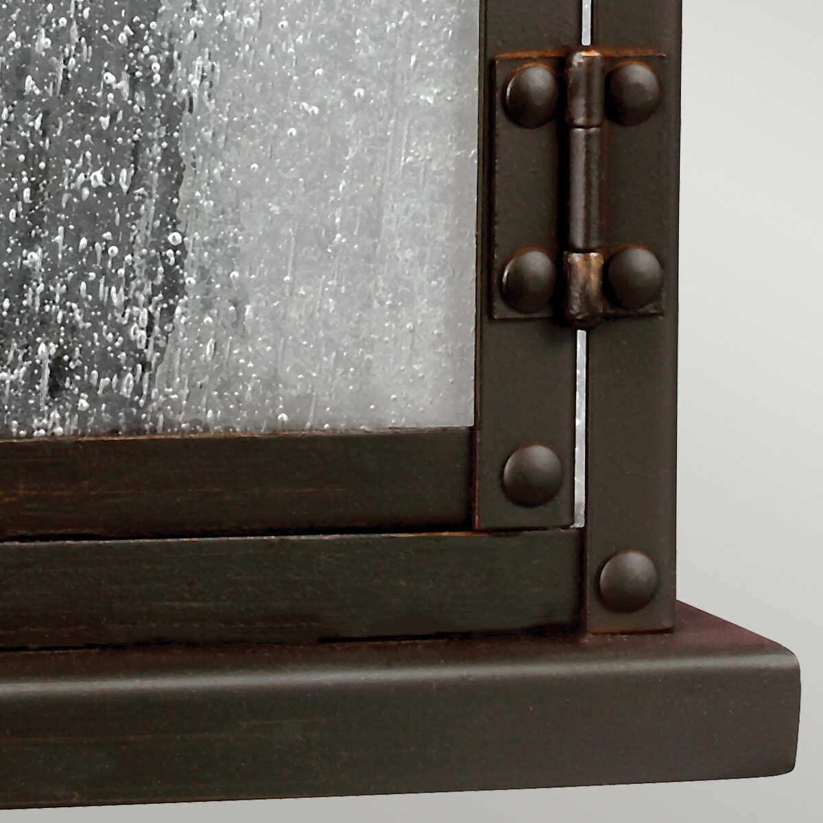 The Feiss Pediment Small Outdoor Wall Light features a classic lantern design with a robust, weather-resistant bronze finish, making it an ideal choice for exterior lighting. Its clear, textured glass panels provide a warm and inviting glow, enhancing the ambiance of any outdoor space. The sturdy construction ensures durability, while the elegant design complements a variety of architectural styles. Perfect for illuminating entryways, patios, or garden paths, this wall light combines functionality with timeless style, offering both security and aesthetic appeal to your home's exterior.
