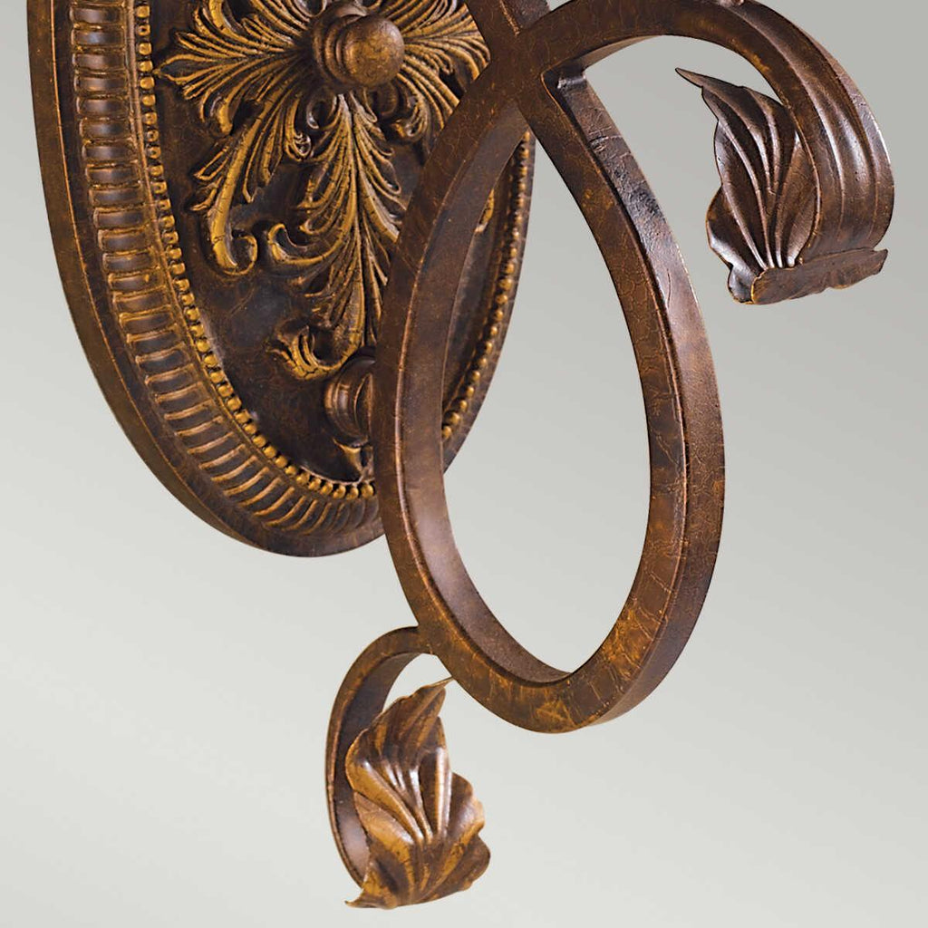 This Feiss Sonoma Valley Aged Tortoise Shell Single Arm Wall Light by Elstead Lighting is a beautiful light. The cream-ridged glass shade is held in place by the delicately detailed sconce, and the curling, curving arm with some lovely leaf detail at each end, bringing to mind the vineyards of Sonoma Valley for which this light is named.