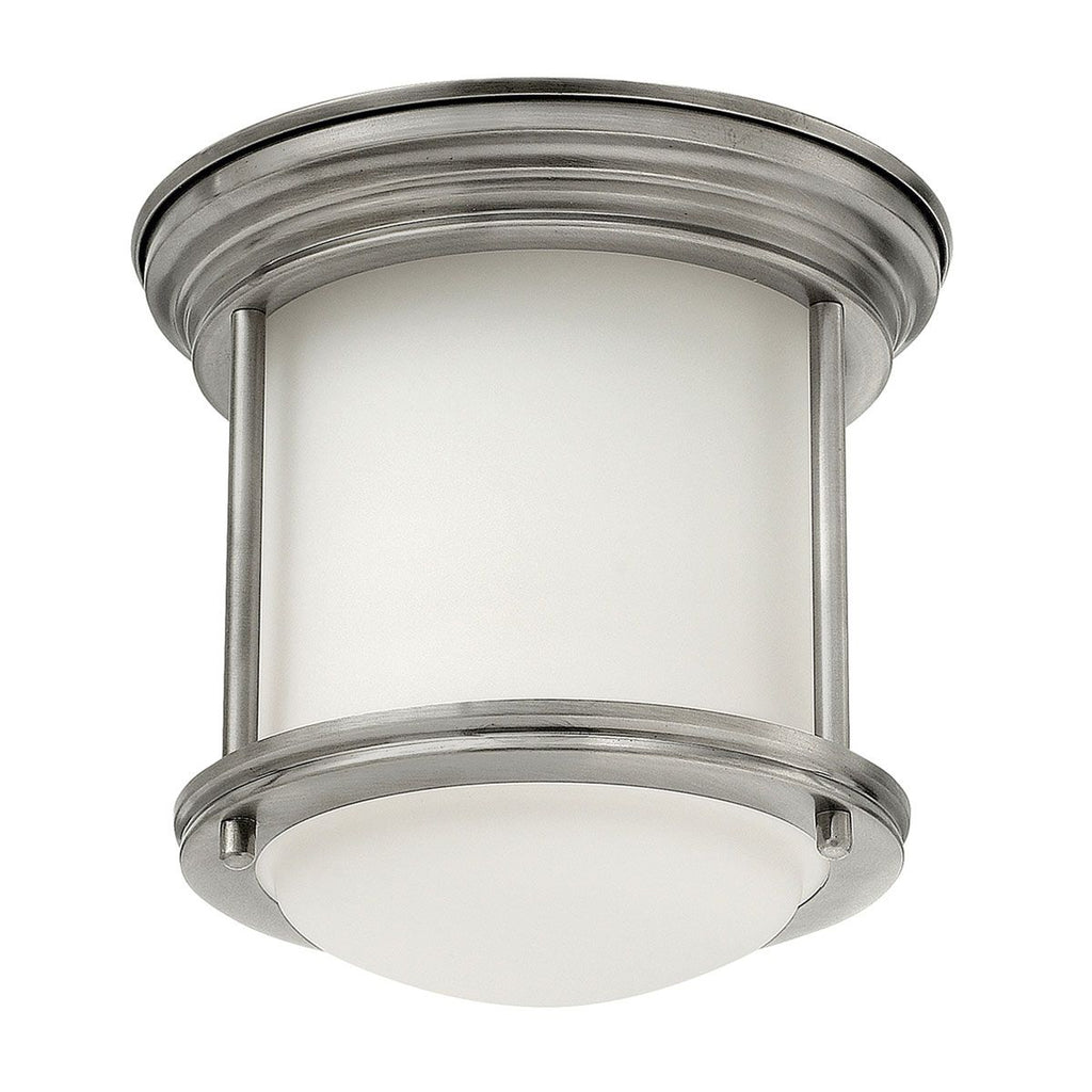 Hadrian Flush Bathroom Ceiling Light - Opal Glass - Antique Nickel