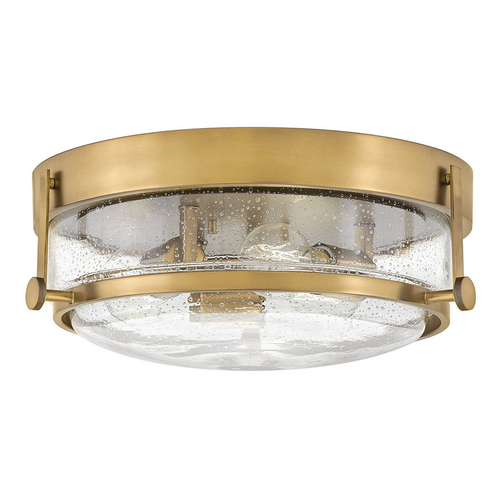 Experience the perfect blend of timeless elegance and modern sophistication with the Harper 3 Light Brass Flush Ceiling Light. Featuring a distinctive clear seeded glass shade encased in a striking metal ring with decorative knobs, this fixture adds a refined touch to any space. The Heritage finish enhances its classic appeal while complementing contemporary interiors. Shop with confidence from the UK’s leading lighting specialists and enjoy free 90-day UK returns on your purchase.| Height | 15.9cm/6.3" |