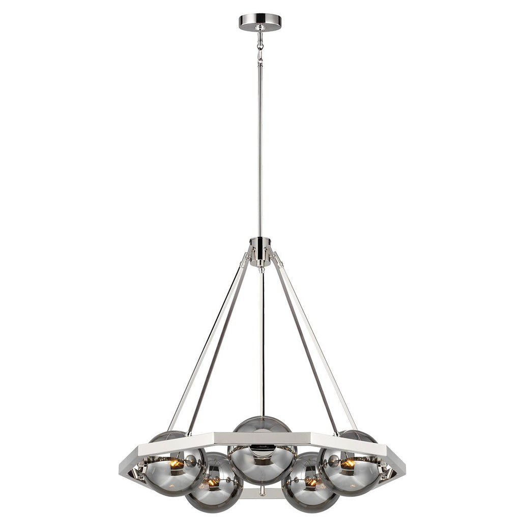 Enhance your living room or bedroom with the Harper 5 Light Polished Nickel Chandelier—a striking blend of industrial inspiration and contemporary elegance. Featuring machinery-inspired hardware and a sophisticated polished nickel finish, this chandelier is designed to make a statement. The distinctive plated smoke glass globes beautifully encase each light, creating a captivating focal point in any room. Shop with confidence from the UK’s leading lighting specialists and enjoy free 90-day UK returns.| Adjustable Drop | 222.3cm/87.5" |