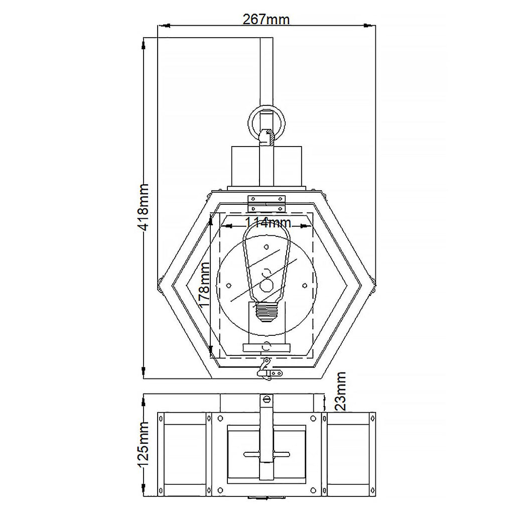 Elevate your outdoor space with the Heath 1 Light Small Black Outdoor Wall Lantern. Designed with a striking hexagonal silhouette, this lantern features a durable aluminum frame and clear seeded glass, creating a captivating interplay of light and shadow. The domed roof and gracefully curved arm add a touch of sophistication, while the Mottled Black finish enhances its rustic appeal. Engineered for reliability with an IP44 rating, the Heath lantern is bui Light to withstand the elements. Shop with confidence from the UK’s leading lighting specialists and enjoy free 90-day UK returns.| Projection | 12.5cm/4.9" |