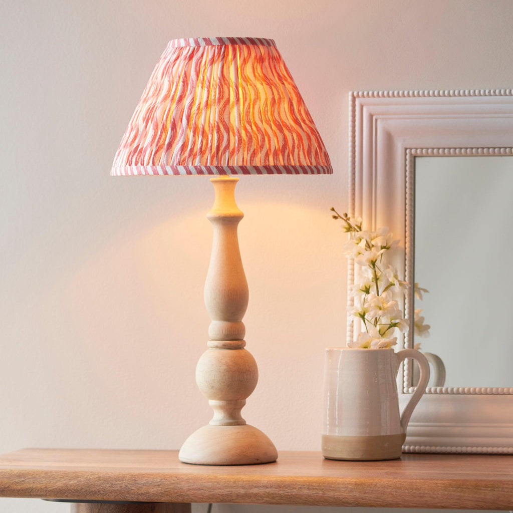 Hidcote Wooden Table Lamp & Ripple 30cm Coral Pink Shade
