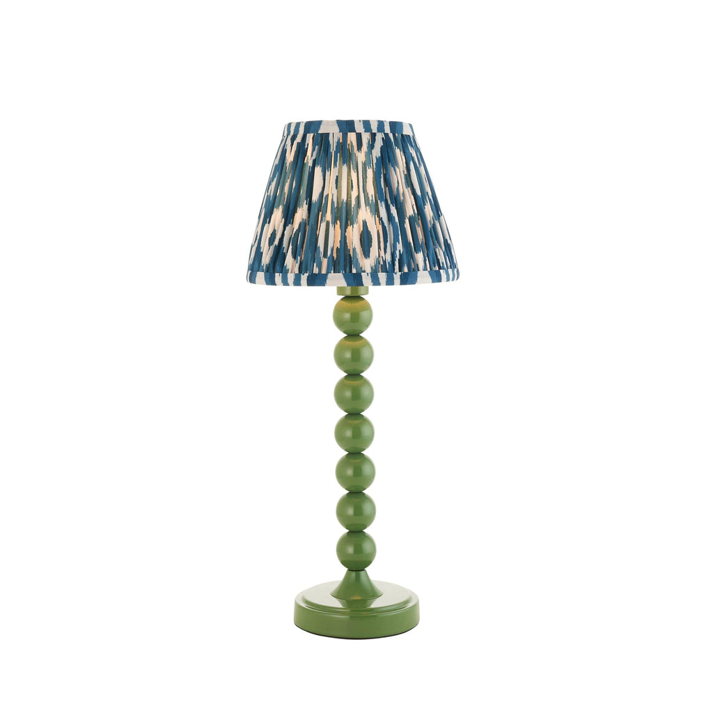 Higgledy Green Table Lamp & Ikat 20cm Marlin Blue Shade