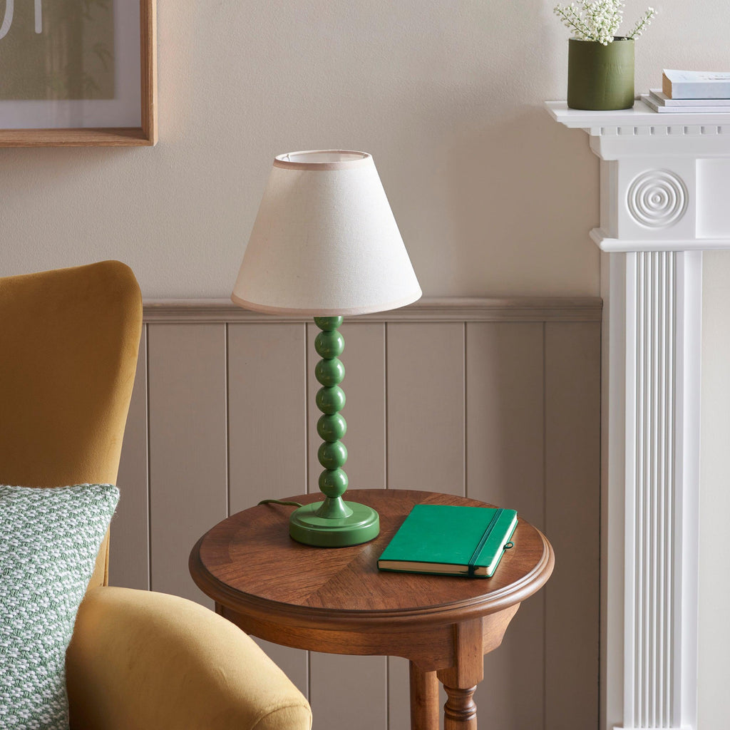 Brighten up your home with this charming table light, designed to add a splash of color and personality to any space. Featuring a playful design of multiple stacked metal spheres, beautifully finished in a glossy Cotswold green, this light is not only stylish but also functional. It comes equipped with an E14 lamp holder, an in-line on/off switch, and a color-matched fabric flex for a cohesive look. Perfect for your bedroom, this delightful table light creates an inviting atmosphere ideal for reading or unwinding with a good book. When paired with our vintage and almond white 20cm Ivy shade, it becomes a stunning focal point that enhances your decor while providing warm, ambient lighting. Enjoy peace of mind with our secure delivery service and hassle-free returns, ensuring a safe online shopping experience. Elevate your home with this perfect color addition today!| Height | 51.5cm/20.3" |