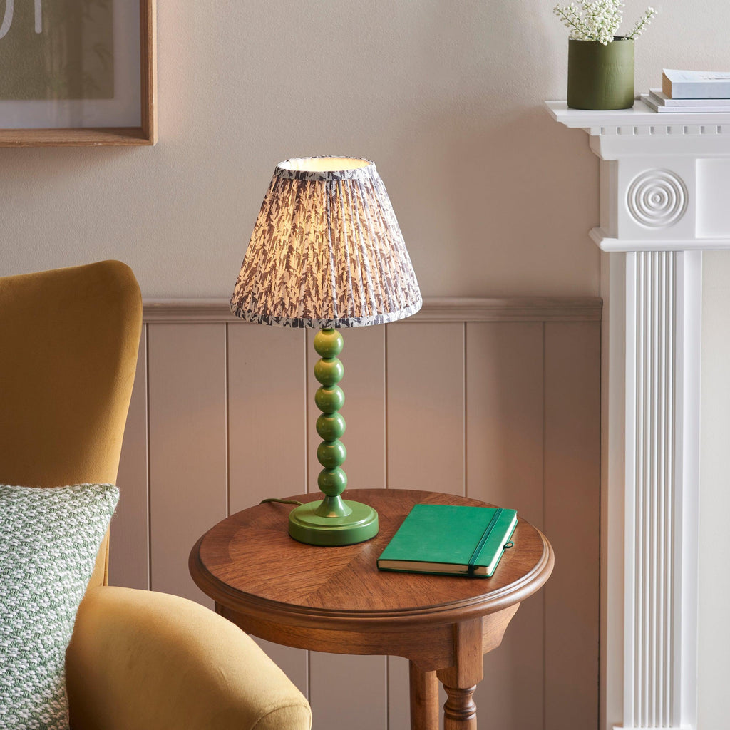 Brighten up your home with this charming table light, designed to add a splash of color and personality to any room. Featuring a playful design of multiple stacked metal spheres, elegantly finished in a glossy Cotswold green, this light is not just a source of illumination but a statement piece. It comes equipped with an E14 lamp holder, an in-line on/off switch, and a color-matched fabric flex for a cohesive look. Paired with our sophisticated 25cm Pearl Grey Leaf shade, this table light is the perfect accent for your dining room, creating a warm and inviting atmosphere ideal for reading or enjoying intimate dinners. Shop with confidence knowing that we offer secure delivery, easy returns, and a safe online shopping experience. Transform your space with this delightful addition today!| Height | 51.5cm/20.3" |