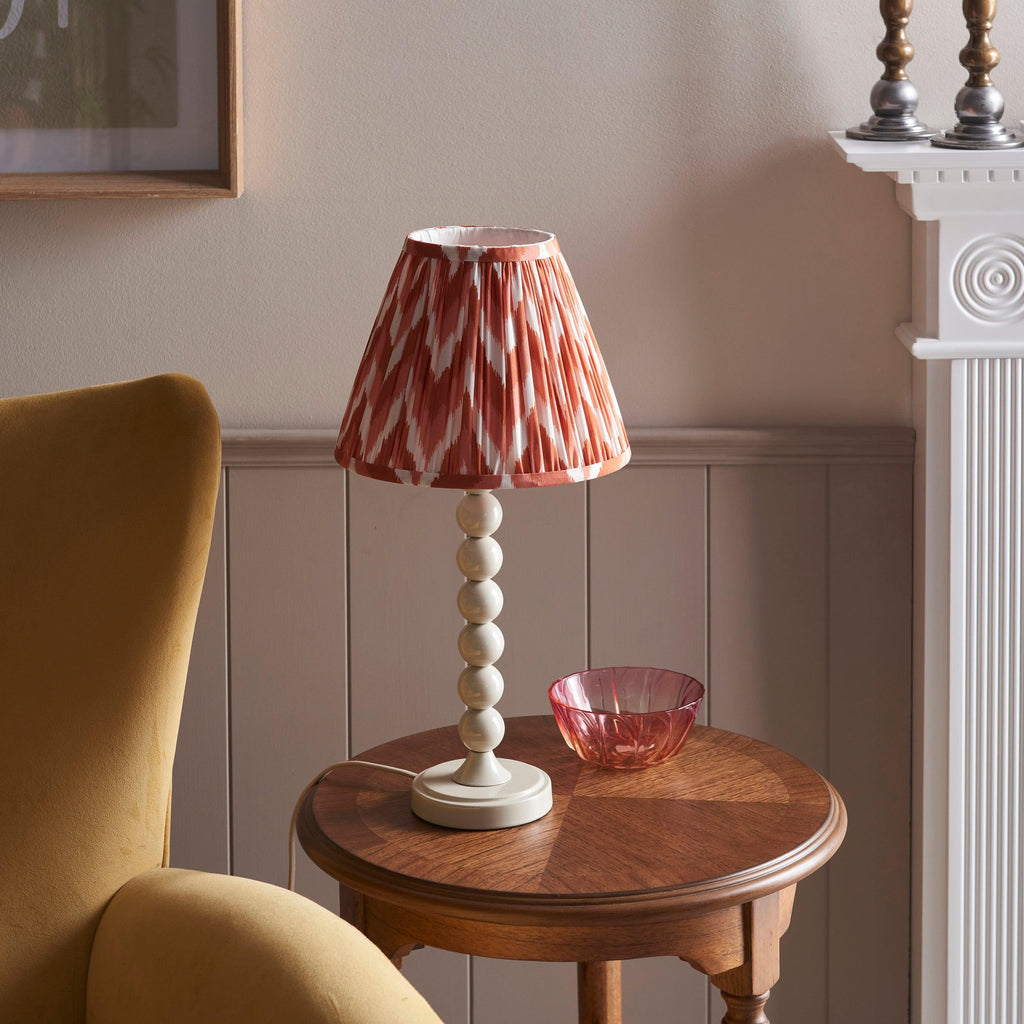 Brighten up your home with this charming table light, designed to add a splash of color and personality to any space. Featuring a playful design of multiple stacked metal spheres, elegantly finished in a glossy almond white, this light is not just functional but a statement piece. It comes equipped with an E14 lamp holder, an in-line on/off switch, and a color-matched fabric flex for a cohesive look. Perfect for your bedroom, this delightful lamp is ideal for creating a cozy reading nook, allowing you to immerse yourself in your favorite books with ease. The vibrant apricot orange Zigzag 25cm shade beautifully complements the base, making it a stunning addition to your decor. Enjoy peace of mind with our secure delivery service and hassle-free returns, ensuring a safe online shopping experience. Illuminate your home with style and comfort—order yours today!| Height | 51.5cm/20.3" |