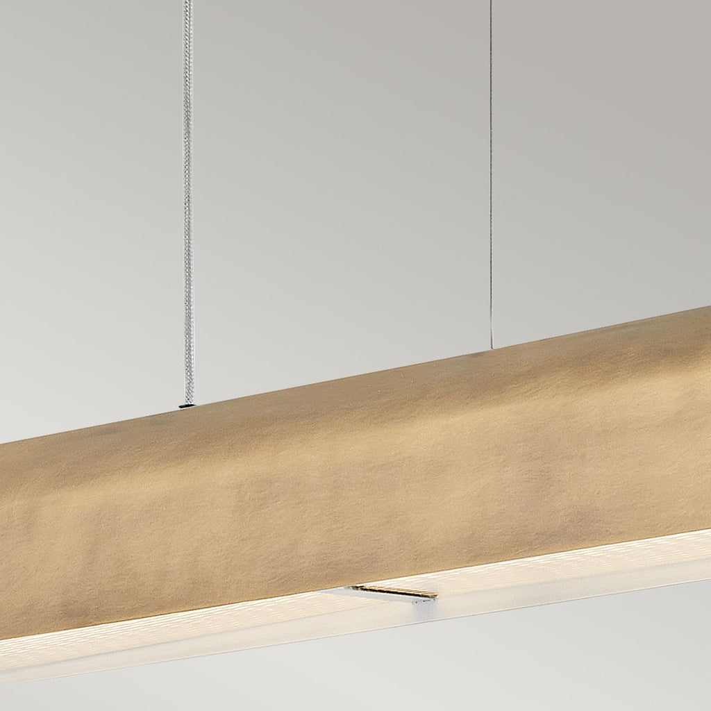 Experience the refined elegance of the Hinkley Arco Brass Linear LED Pendant Light. Designed with a sleek, minimalist profile, this fixture features a folded metal shade and sophisticated decorative knobs in a luxurious Heritage Brass finish. The substantial, clear ribbed glass—etched on the interior—gently diffuses the integrated LED illumination, creating a warm and inviting ambiance in any space. Shop with confidence from the UK’s leading lighting specialists and enjoy free 90-day UK returns on your purchase.| Projection | 11.2cm/4.4" |