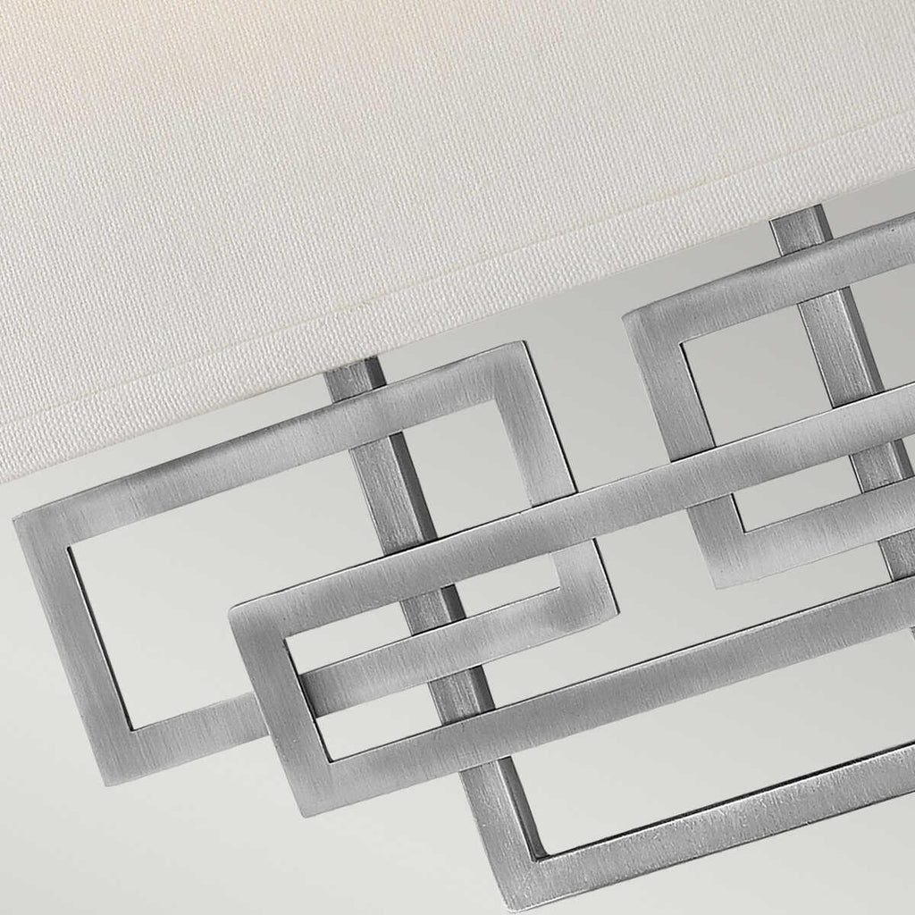Elevate the ambiance of your living room or bedroom with this sophisticated Hinkley Lanza 2 Light Nickel Wall Light, featuring a sleek geometric design that seamlessly blends modern elegance with timeless appeal. The brushed nickel finish adds a touch of contemporary flair, while the rectangular fabric shade softly diffuses light, creating a warm and inviting atmosphere. Designed to accommodate LED lamp bulbs, this Hinkley Lanza 2 Light Nickel Wall Light not only enhances your space with its stylish presence but also offers energy-efficient illumination. Perfect for adding a touch of refinement to any interior, this fixture is a versatile addition to your home decor.