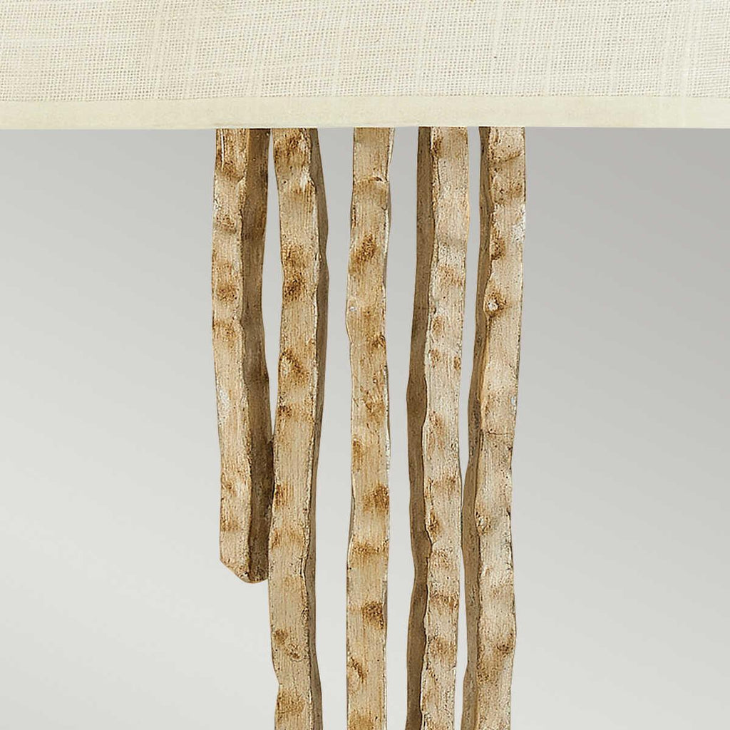 This elegant Hinkley Spyre 2 Light Champagne Gold Wall Light features a unique design with slender, textured rods extending vertically through a soft, cylindrical fabric shade, creating a striking visual contrast. Its sophisticated blend of natural and contemporary elements makes it a perfect addition to any living room or bedroom, adding a touch of warmth and style. Designed to be used with LED lamp bulbs, this fixture not only enhances the ambiance of your space but also offers energy efficiency and long-lasting illumination.