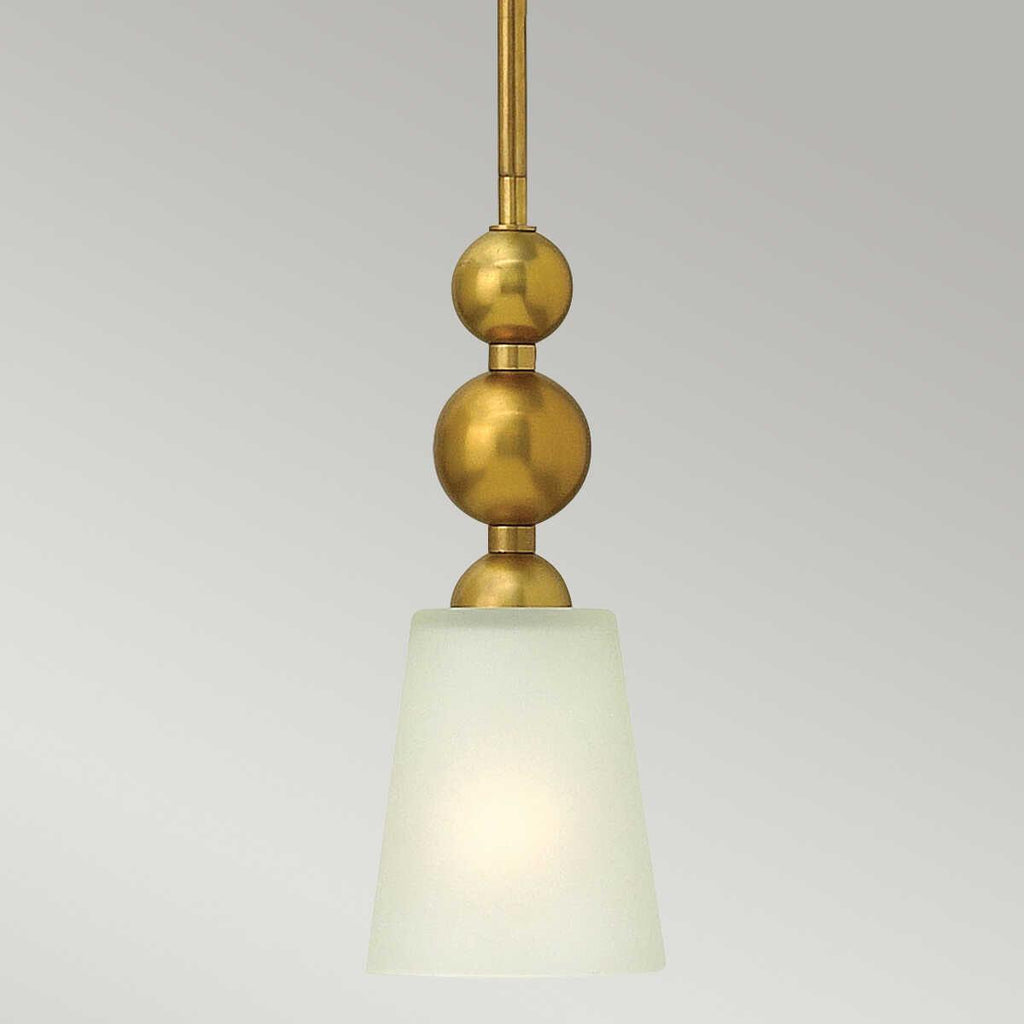 The elegant Hinkley Zelda Vintage Brass Mini Pendant features a sleek, minimalist design with a warm brass finish, complemented by a frosted glass shade that softly diffuses light. Its versatile style makes it a perfect addition to any hallway, living room, or bedroom, adding a touch of sophistication and warmth to your space. Designed to be compatible with LED lamp bulbs, this fixture not only enhances your home's ambiance but also offers energy efficiency and long-lasting illumination.