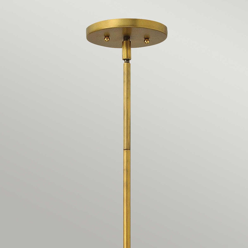 The elegant Hinkley Zelda Vintage Brass Mini Pendant features a sleek, minimalist design with a warm brass finish, complemented by a frosted glass shade that softly diffuses light. Its versatile style makes it a perfect addition to any hallway, living room, or bedroom, adding a touch of sophistication and warmth to your space. Designed to be compatible with LED lamp bulbs, this fixture not only enhances your home's ambiance but also offers energy efficiency and long-lasting illumination.