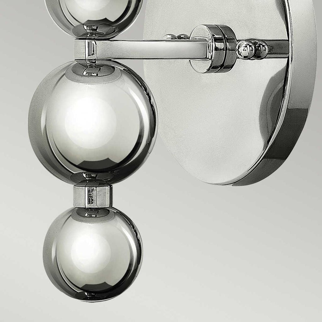 The Hinkley Zelda Polished Nickel Wall Light features a sleek and modern design with a polished nickel finish, complemented by a frosted glass shade that softly diffuses light, creating a warm and inviting ambiance. Its elegant silhouette, highlighted by a series of spherical accents, makes it a perfect addition to both living rooms and bedrooms, adding a touch of sophistication to any space. Designed for versatility, this Hinkley Zelda Polished Nickel Wall Light is compatible with LED lamp bulbs, ensuring energy efficiency and long-lasting illumination.