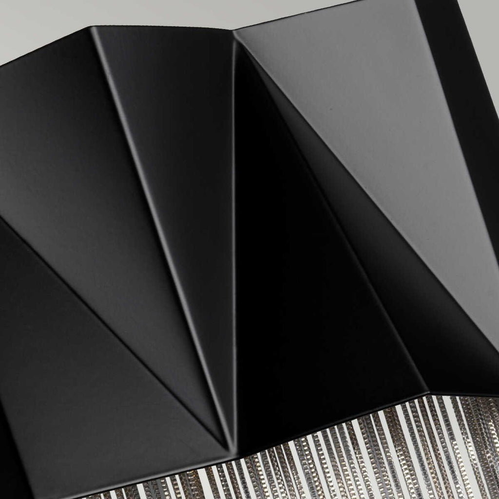 The Hinkley Zuma 3 Light Satin Black & Silver Wall Light features a striking geometric design with a sleek black finish, complemented by cascading metallic chains that add a touch of elegance and modernity. Perfect for enhancing the ambiance of a living room or bedroom, this fixture provides a sophisticated accent that blends seamlessly with contemporary decor. Designed to be used with LED lamp bulbs, it offers energy-efficient illumination while creating a warm and inviting atmosphere.