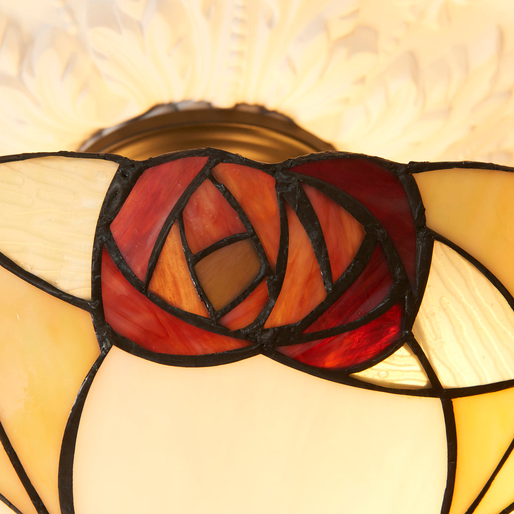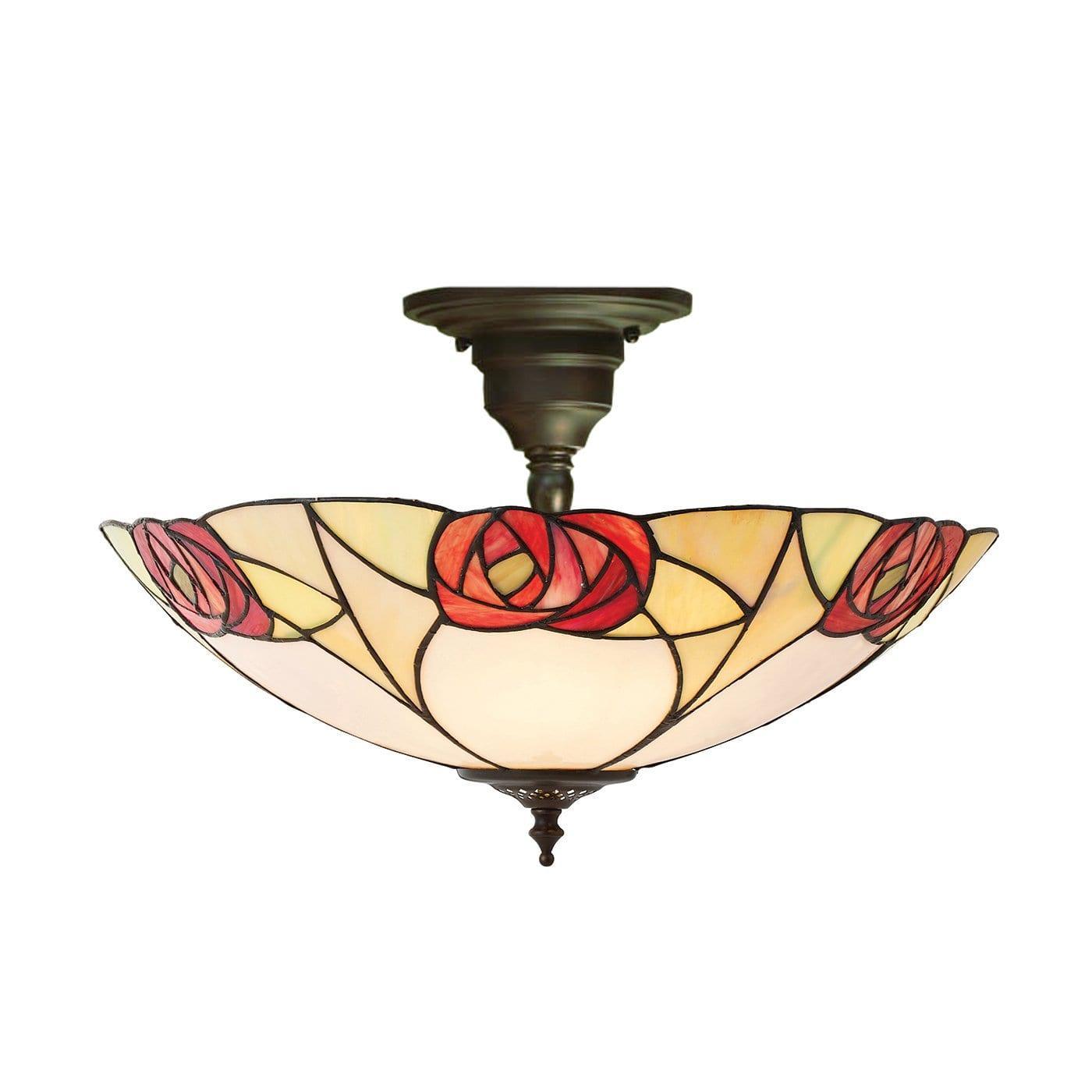 Illuminate your living room with the warm and inviting glow of the Interiors 1900 Ingram Semi Flush Tiffany Ceiling Light. Expertly crafted, this ceiling light adds a touch of elegance and detail to any space. Perfect for creating a cozy and welcoming atmosphere in your home.
