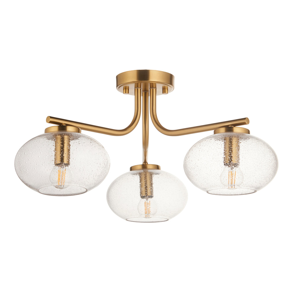 Jacob 3 Light Brass Semi Flush - Bubble Glass Shade