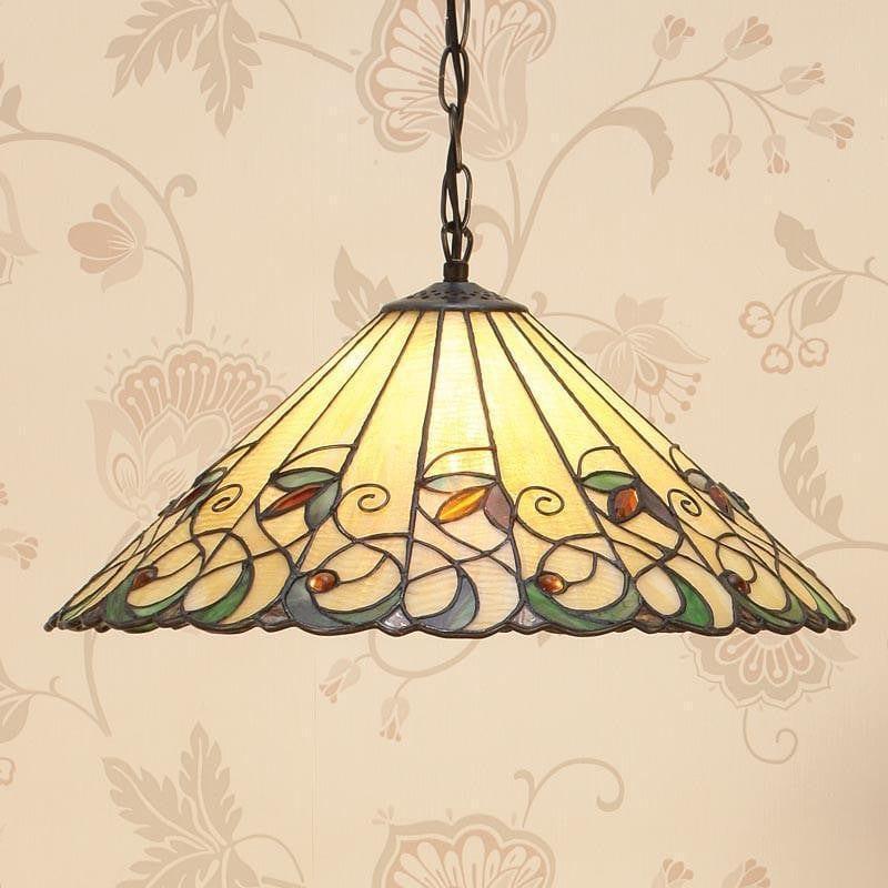 The Jamelia Tiffany Lighting Range by Interiors 1900 is a popular line of Tiffany that combines Art Nouveau styling with neutral beige art glass that is accented with green and amber. The Jamelia Tiffany range includes a variety of other ceiling lights, as well as wall lights, table lamps and floor lamps.