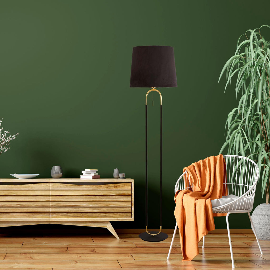 Jazz 1 Light Brass & Black Floor Lamp - Black Velvet Shade